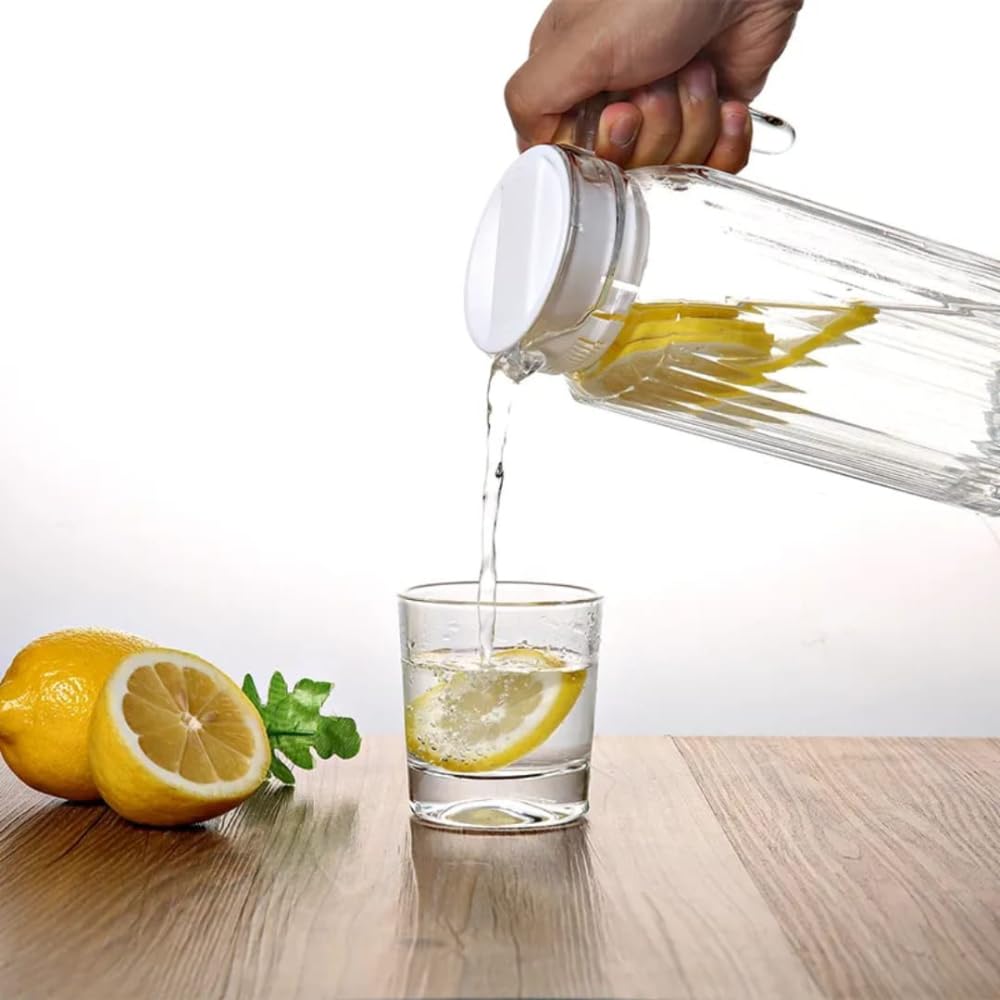✅ Premium Ribbed Glass Jug (1.1 liter) – Made from lead-free soda lime glass, this pitcher offers a thick, clear body with an elegant ribbed texture for a premium, non-slip grip.
