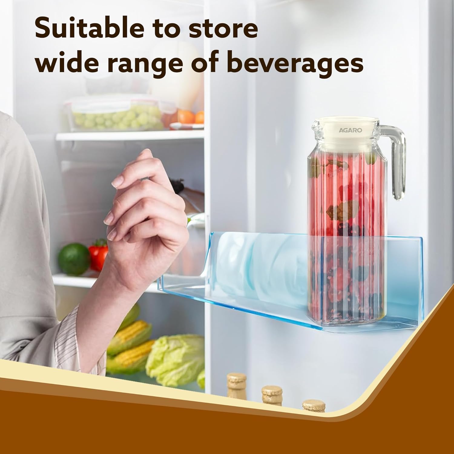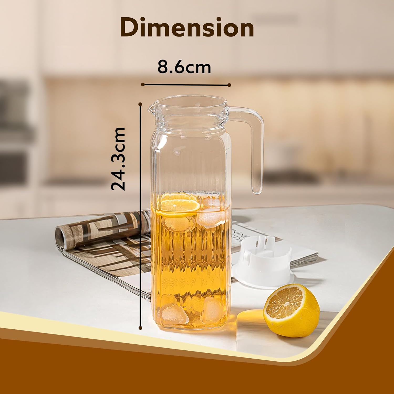 AGARO Elegant Glass Jug with Lid, 1.1L, Multipurpose Jug, Easy Pour Spout & Strong Handle, Transparent Beverage Carafe for Home, Office, Pitcher for Serve Water, Milk, Juice, Beverage, Lassi, Cocktail