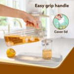I’ve been using this 1.1L glass jug for a few weeks, and it’s really sturdy and practical. The strong handle makes pouring easy, and the easy-pour spout ensures no spills or drips. I’ve used it for water, juices, and even iced tea, and it works well for all purposes.The glass feels thick and durable, giving me confidence that it won’t break easily with regular use. Cleaning is simple too, and it doesn’t retain odors or stains.The only downside is the plastic lid, which doesn’t feel as premium and durable as the rest of the jug and could have been made of a stronger or wood material. Otherwise, it’s a great multipurpose jug for everyday use.