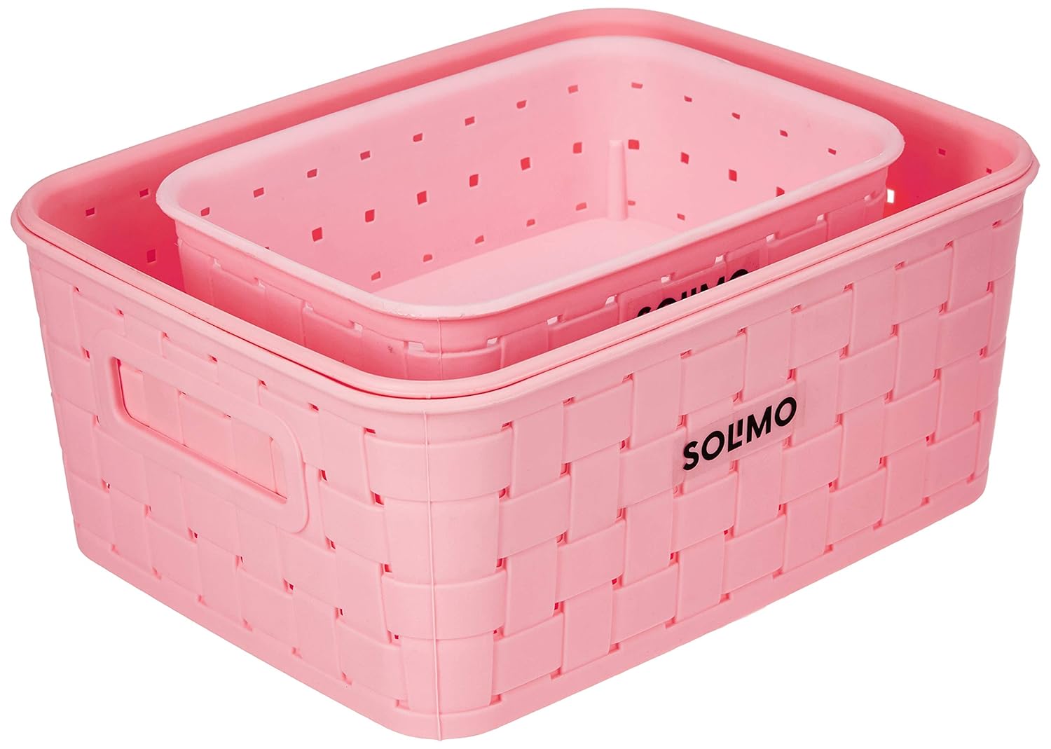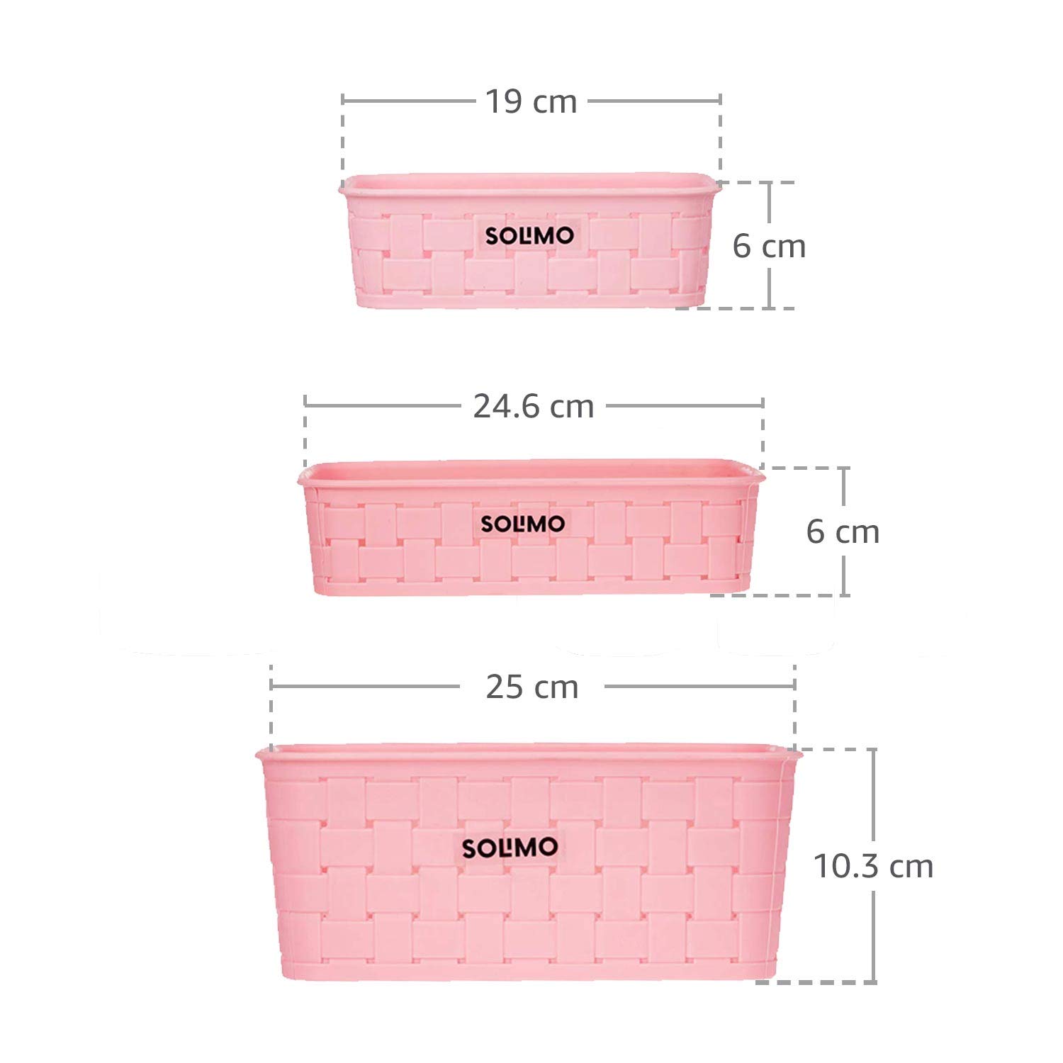 Amazon Brand – Solimo Fruit Plastic Baskets | Set of 3 | Rectangular | Pink