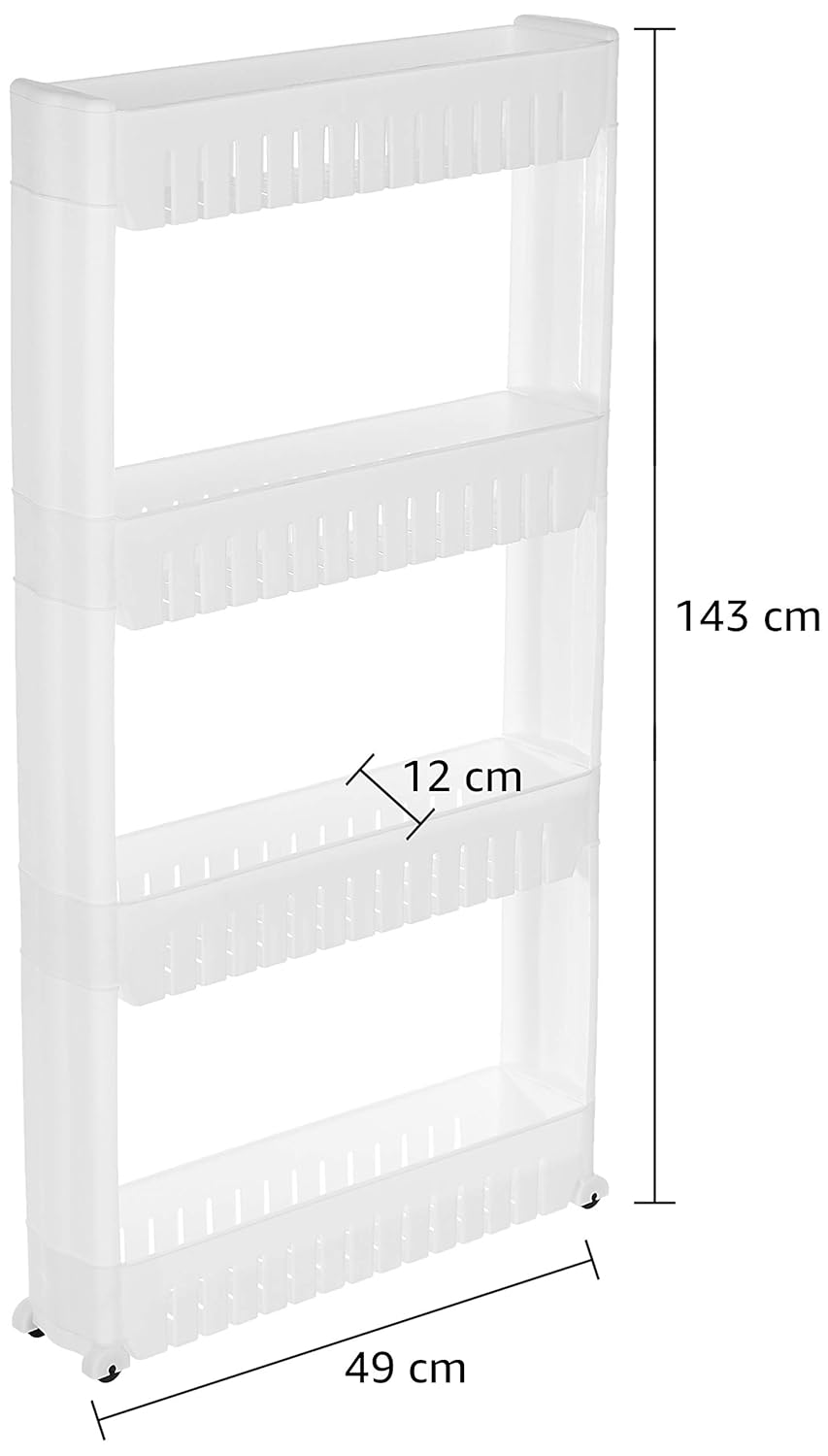 Package Contents:- 1 x 4 Layer Slim Side Space Saving Storage Organiser With Wheels