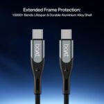 Durable Build 10000+ Bends Lifespan with Aluminium Alloy Shell: Rigorously tested to withstand over 10,000 bends, this Type C to C 65W Cable is engineered to stand up to everyday wear and tear. Armoured with aluminium alloy shell and extended tail protection it not only has structural strength but also offers added protection at stress points, reducing the risk of fraying and breakage over time
