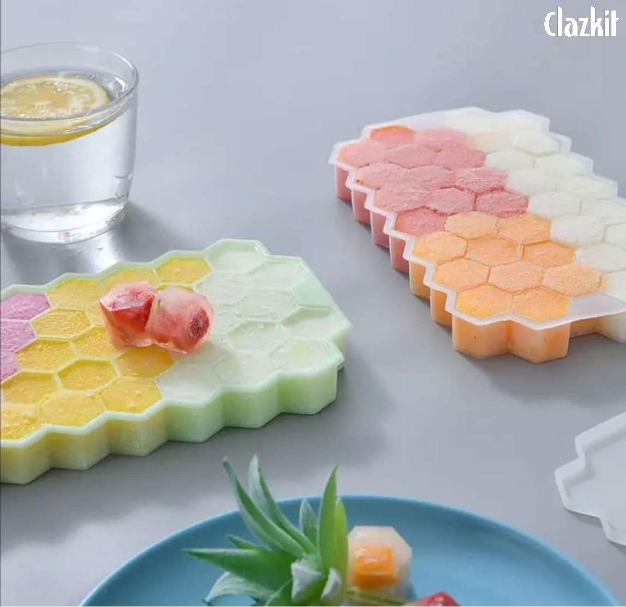 Clazkit Flexible Silicone Honeycomb 37 Cavity Ice Cube Tray for Freezer Moulds Small Cubes Whiskey Fridge Bar Soft Ice Cube Tray -Color May Vary-Pack of 2