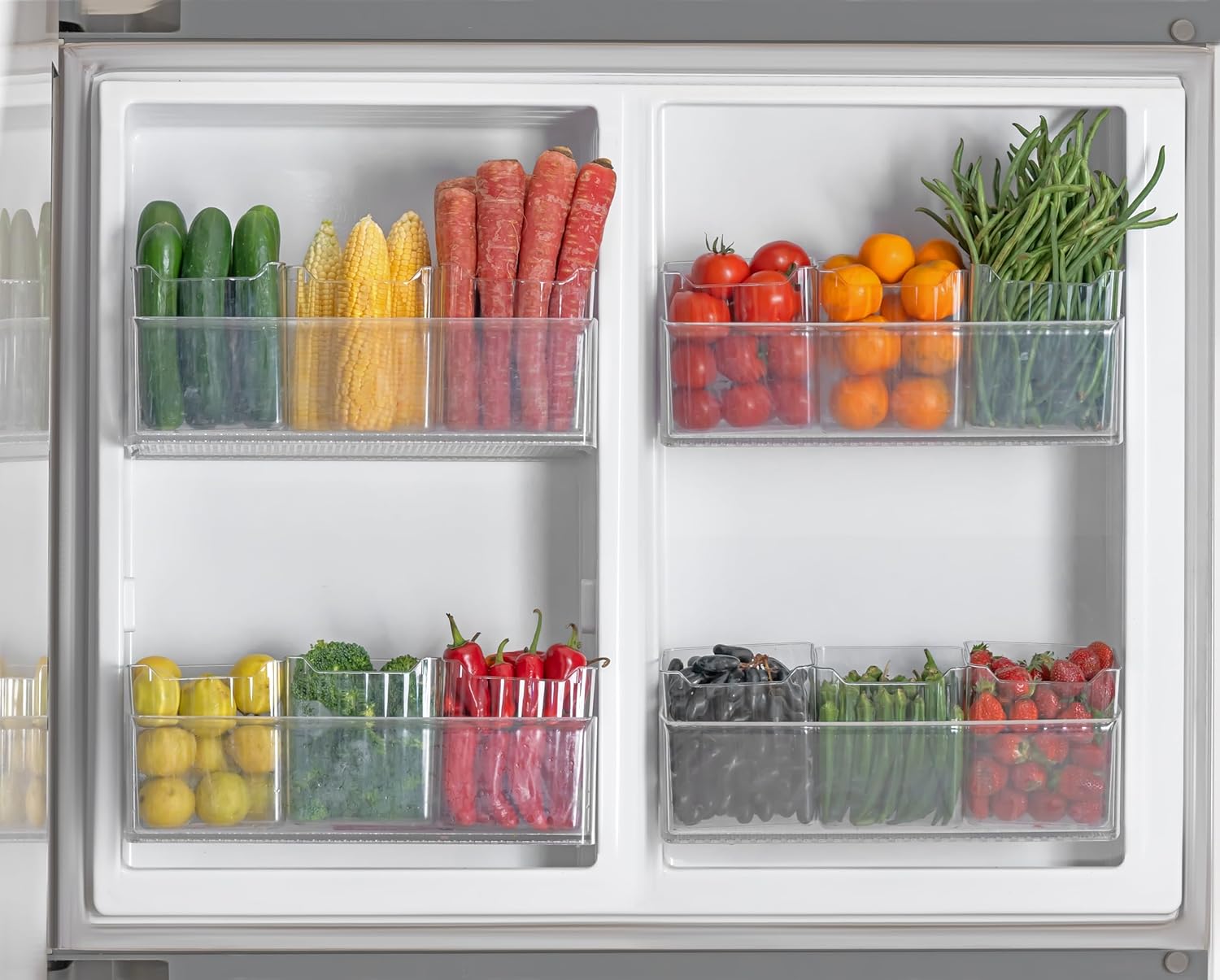 Perfect Size: The Clazkit kitchen organizer container box bins are meticulously designed to fit seamlessly into the refrigerator side door, maximizing space utilization and saving valuable fridge space. By storing vegetables separately in these containers, freshness is preserved, spoilage is minimized, and healthier storage habits are encouraged. Plus, their convenient design ensures easy access with just a simple open of the fridge door.