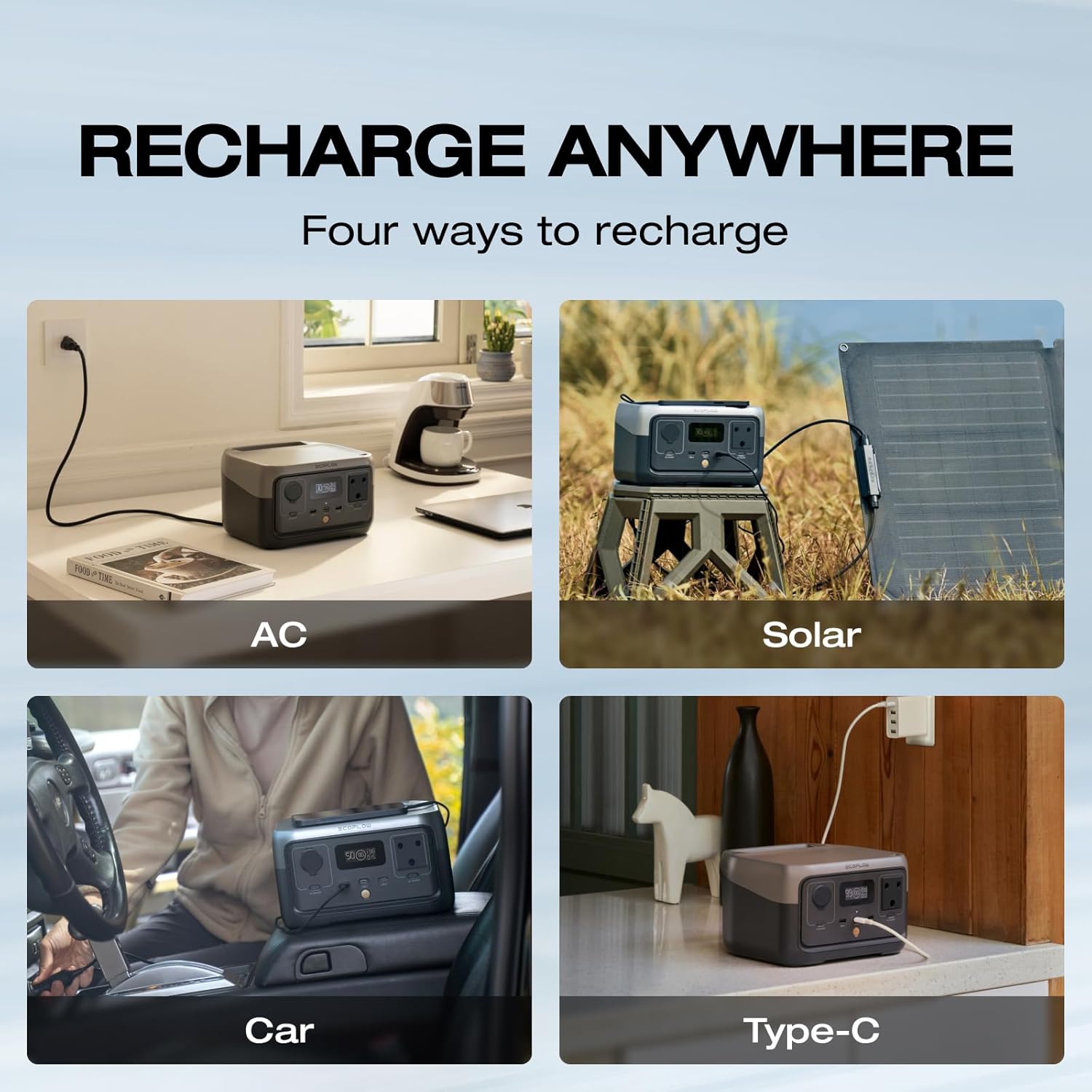 [Fast Solar Charging] – Use clean, green renewable energy to recharge RIVER 2 power generator in as fast as 2.3 hours with 110W solar input.