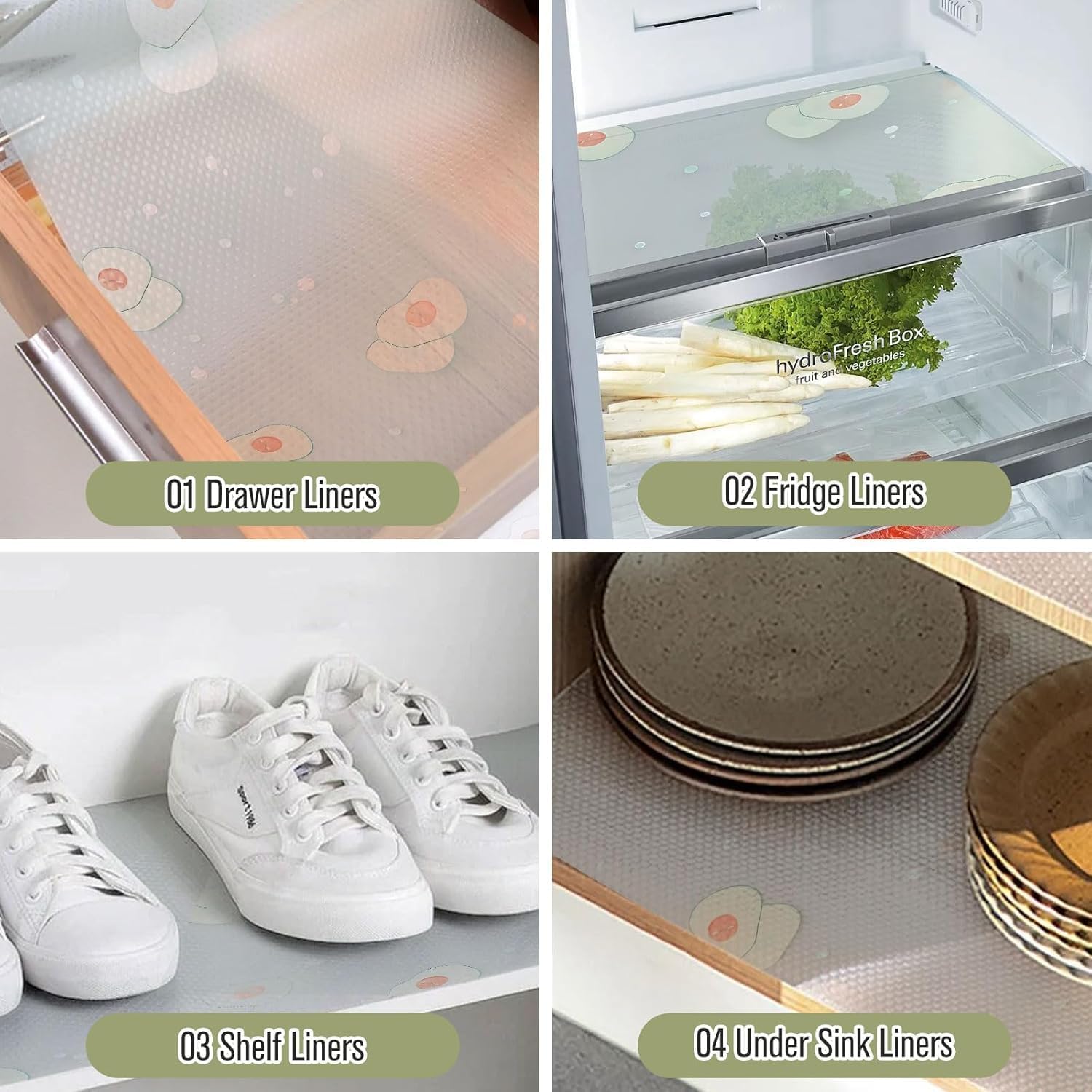 【MULTIPURPOSE】: Refrigerator shelf liners for glass shelves can not only be used to keep the inside of the refrigerator clean and tidy, but also an essential home kitchen gadgets accessories. Such as a shelf liner, cabinet liner, drawer liner, placemat, table mats, Coasters, desk mat, which is convenient and beautiful