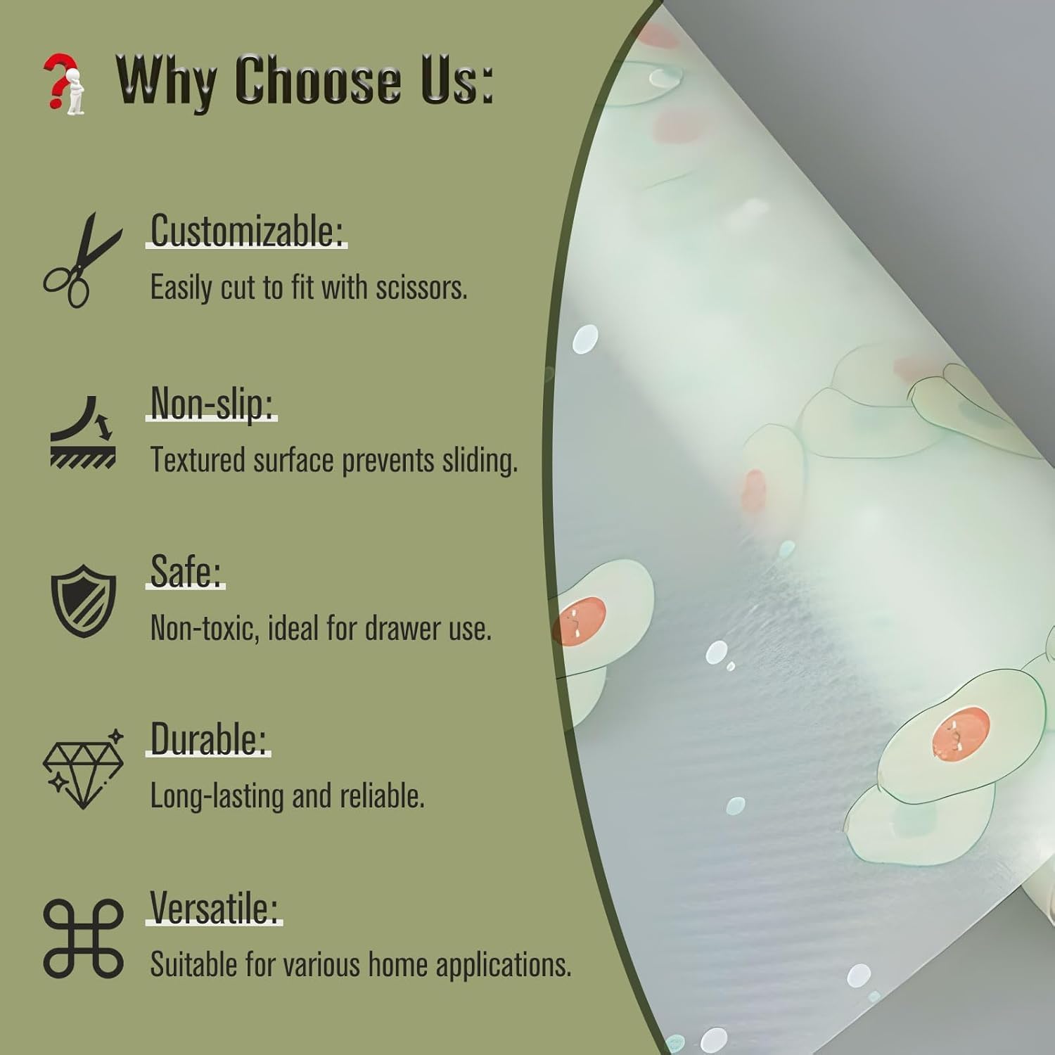 【Easy to Install & DIY】: ESPERO kitchen cabinet liner is very convenient to use, you can easily cut out the size you need with scissors or DIY into various patterns you want, not only to protect the drawer or table surface, but also to decorate the house. Is the best choice for home life.