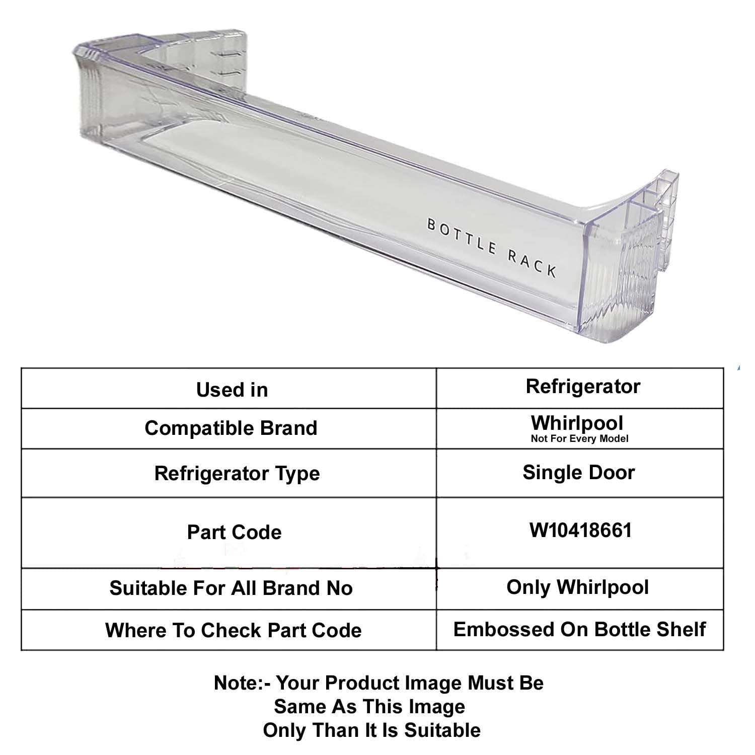 COMPATIBILITY: Specially designed bottle shelf compatible with Whirlpool single door refrigerators, ensuring a perfect fit for your appliance