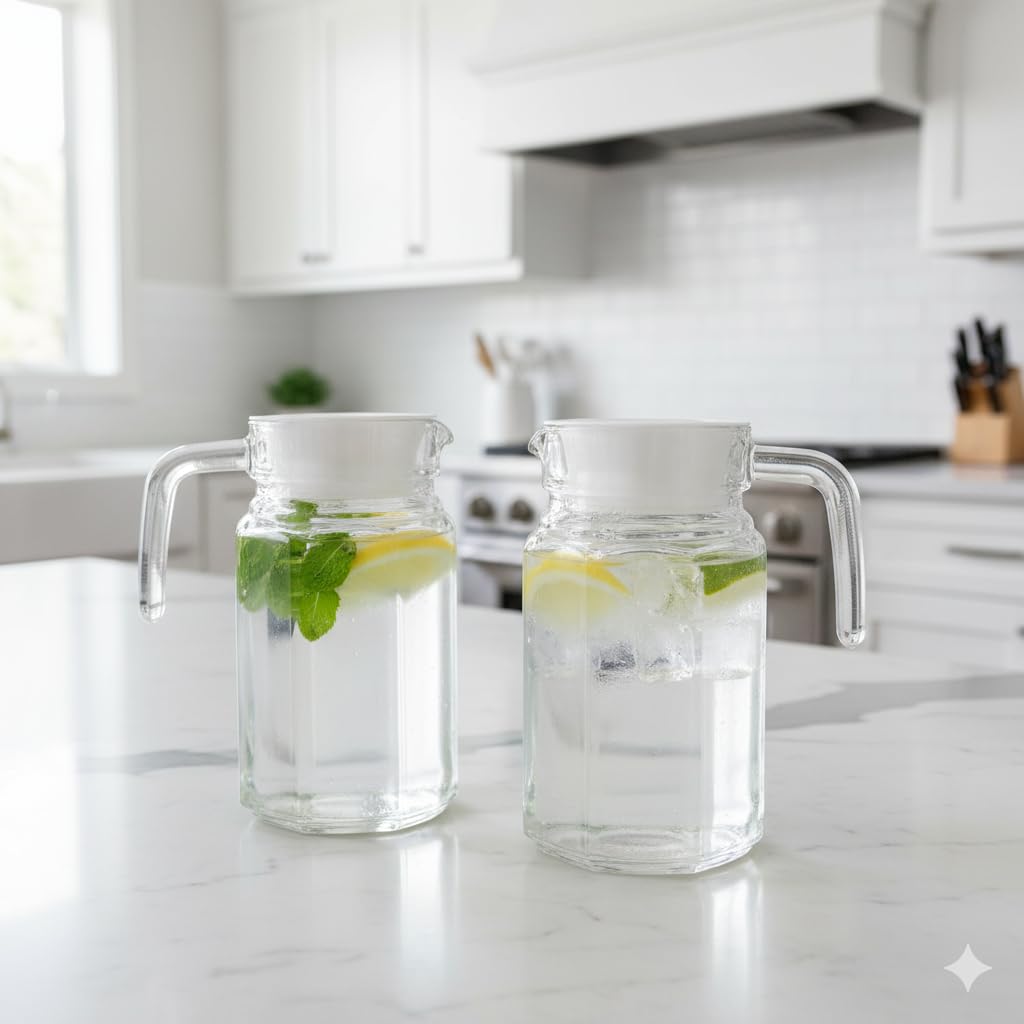 Quench your thirst and elevate your serving style with this beautiful Premium Glass Pitcher. As perfectly captured in the image with fresh lemons, mint, and ice, this pitcher is the ultimate vessel for preparing and serving all your favorite cool beverages. From zesty homemade lemonade and crisp iced tea to sparkling fruit-infused water and morning juice, it’s designed for everyday use and special occasions alike. Crafted from high-quality, heat-resistant borosilicate glass, it’s durable enough for both hot and cold drinks, making it incredibly versatile. The elegant square-ribbed texture not only adds a touch of sophistication but also provides a comfortable grip. The sturdy handle and secure lid ensure effortless pouring and maintain the freshness of your drinks. Its practical design allows it to fit comfortably in most refrigerator doors, saving valuable shelf space. Refreshingly simple, brilliantly clear, and built to last—this pitcher is an indispensable addition to any kitchen.