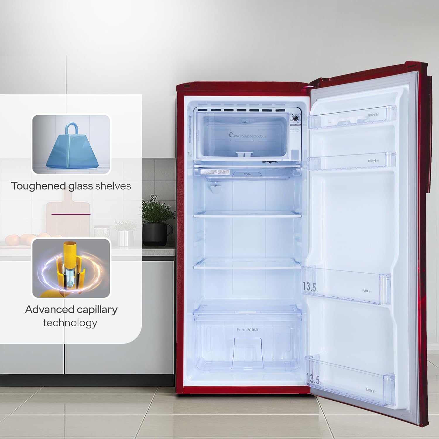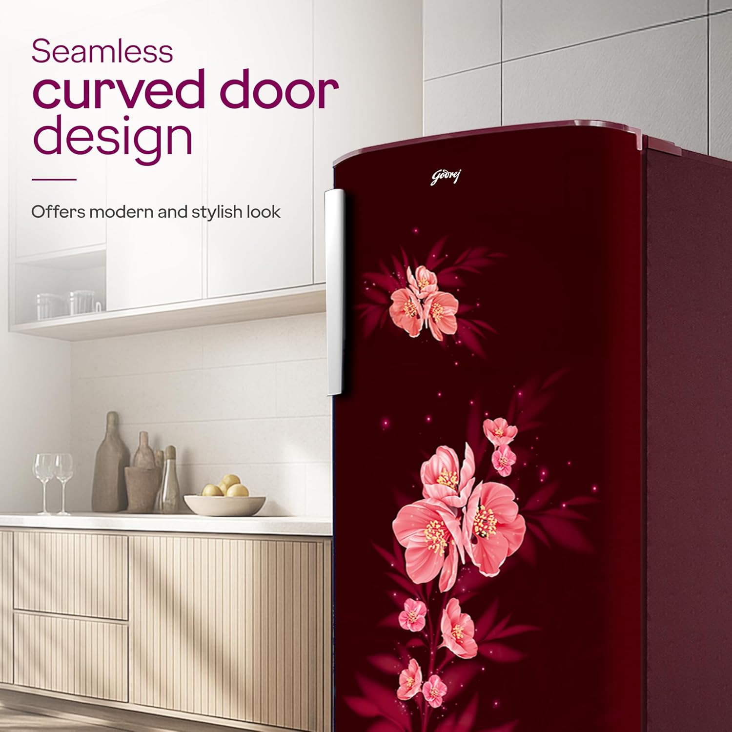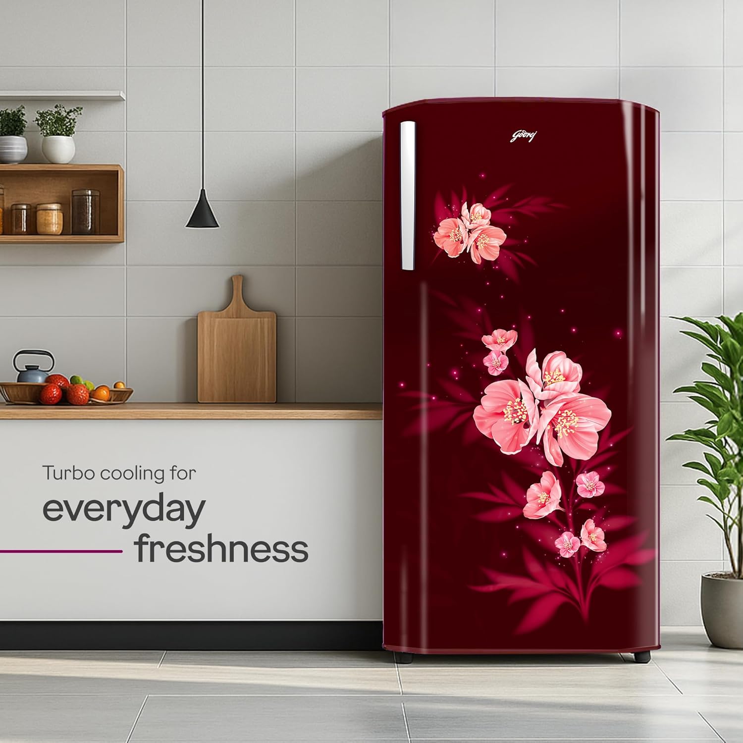 Godrej 180 L 4 Star | Turbo Cooling Technology | 24 Days Farm Freshness | Large Vegetable Tray | Toughened Glass shelves | Direct Cool Single Door Refrigerator (RD EDGENEO 207D THF MP WN, Maple Wine)