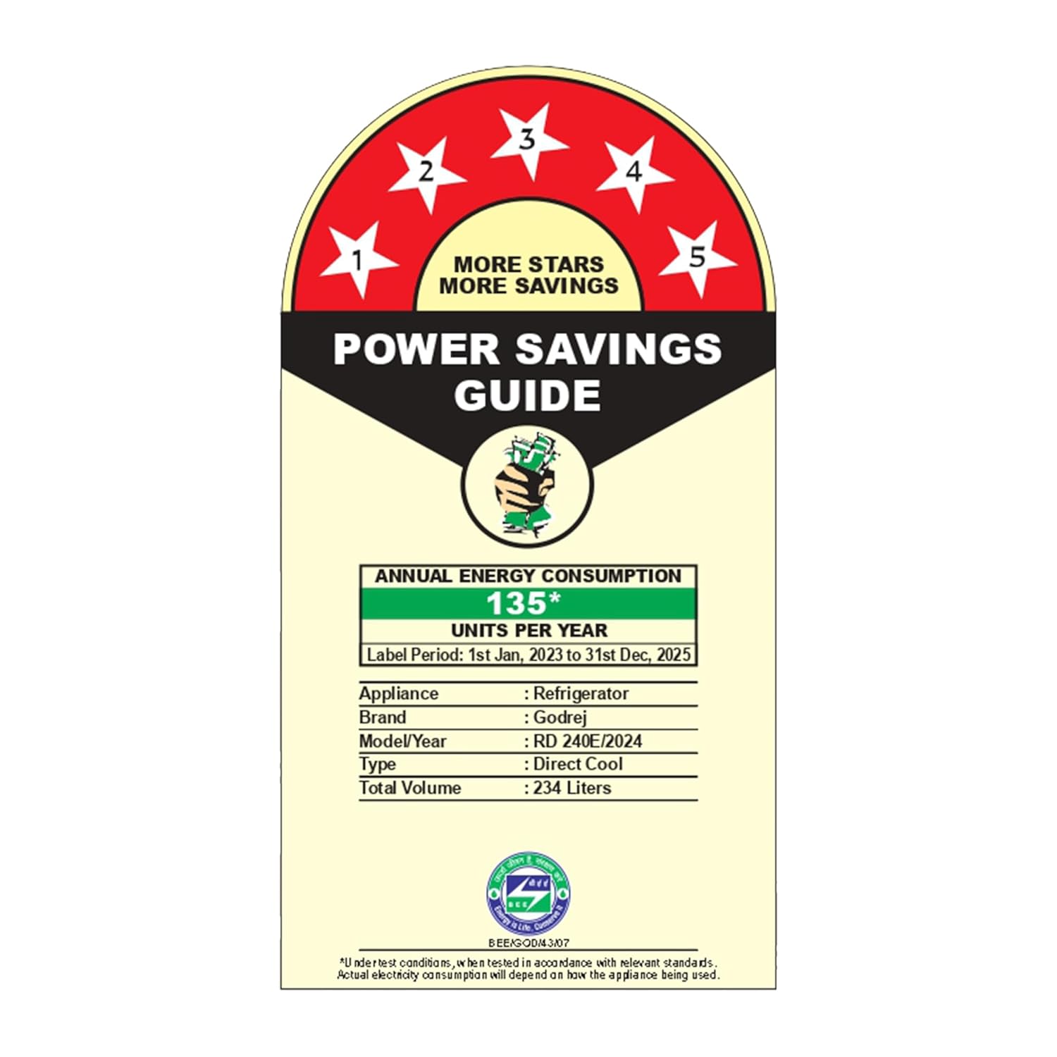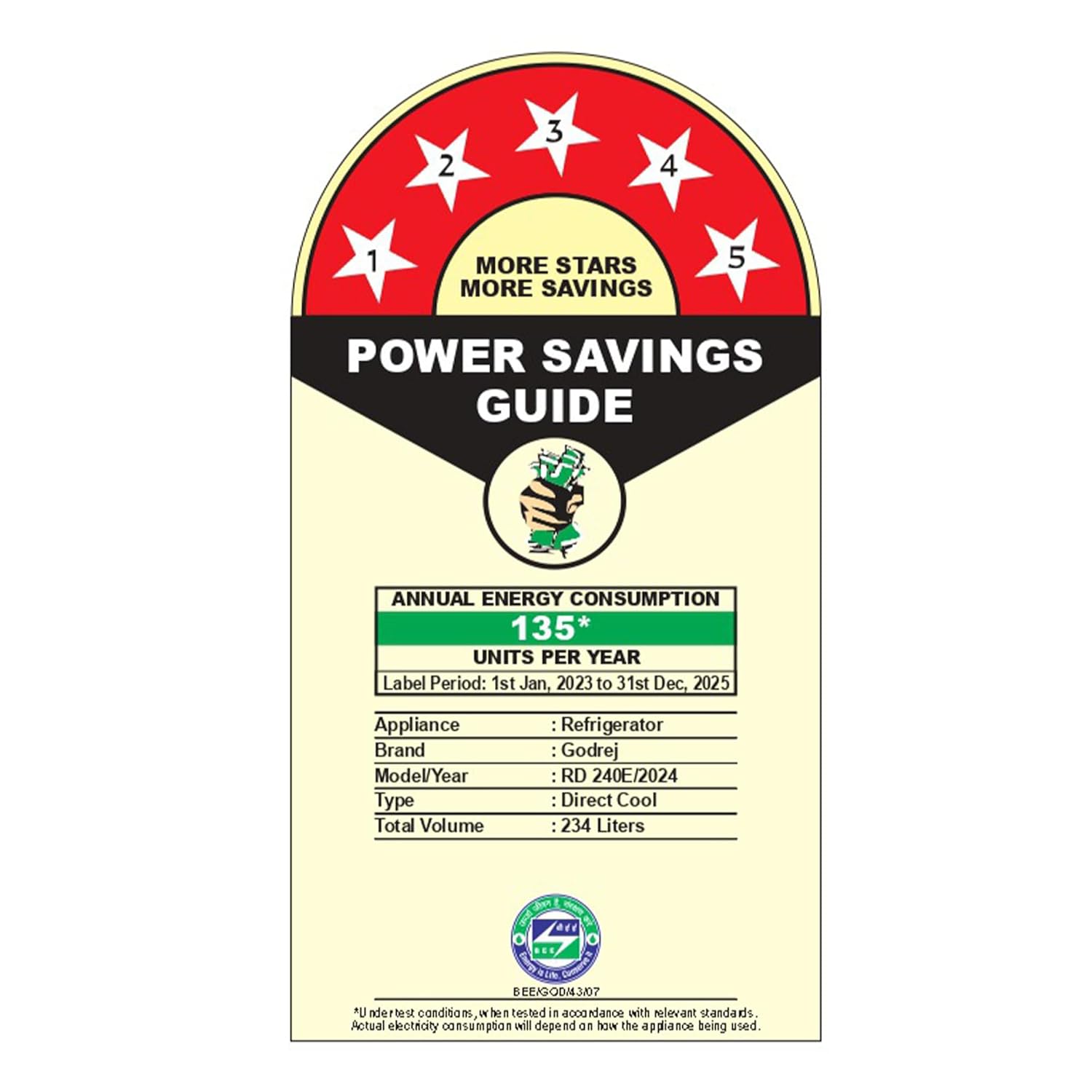 Energy Efficiency: 5 star : Best in Class Efficiency (Please refer energy label on product page or contact brand for more details)