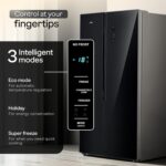 Godrej 600L 3Star | 1+2 Year Additional Warranty | Smart Convertible Zones | Toughened Glass Door | Frost Free Inverter Side By Side Refrigerator (2025 Model, RS EONVELVET 600C RIT BK GL, Black Glass)