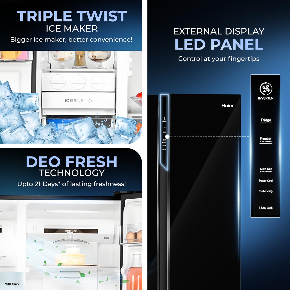 Haier 602L 3Star 2 Door Side by Side Frost Free Refrigerator|100% Convertible|Expert Inverter Technology|Digital Display Panel|Triple Twist Ice Maker|Deo Fresh Technology (HRS-682KS, Black Steel)