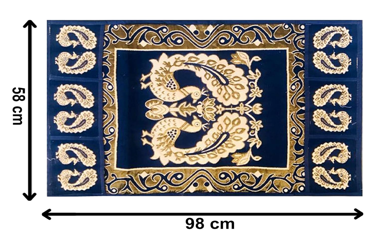 Heart Home Fridge Top Cover with 6 Utility Side Pockets|Peacock Design & Durable Cotton|Size 98 x 58 CM (Blue)