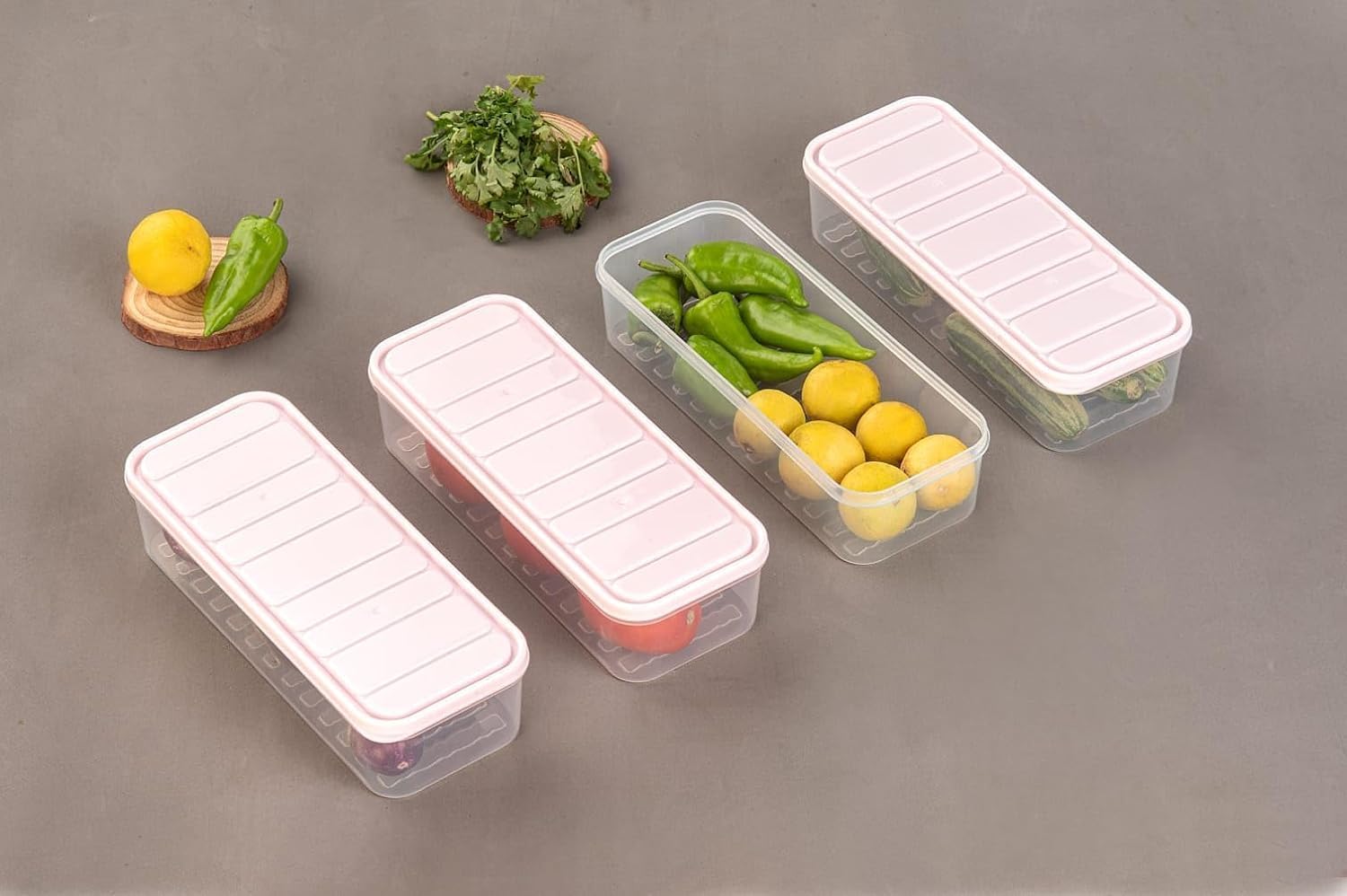 HomeWiz Plastic 1200 ML Kitchen Fridge Storage Container Box X 4 | 4800 ML| BPA Free,Food Grade | For Fruits,Vegetables,And More | Durable, Stackable, Secure Sealing and Organizing