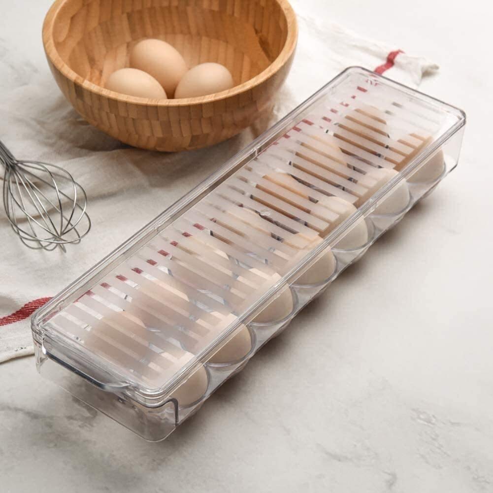 CAPACITY: The bin measures 14.5″ L x 4.5″ W x 3″ H and holds up to 14 eggs. The slim, compact design effortlessly fits into any refrigerator.