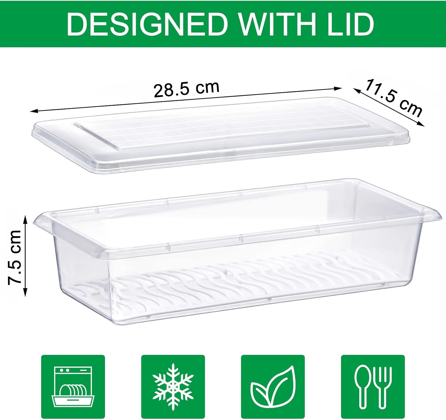 MULTIPURPOSE USE: These fridge storage boxes are ideal for storing fruits, vegetables, meat, fish, leftovers, and dry kitchen ingredients. The lids help prevent odors in the refrigerator.