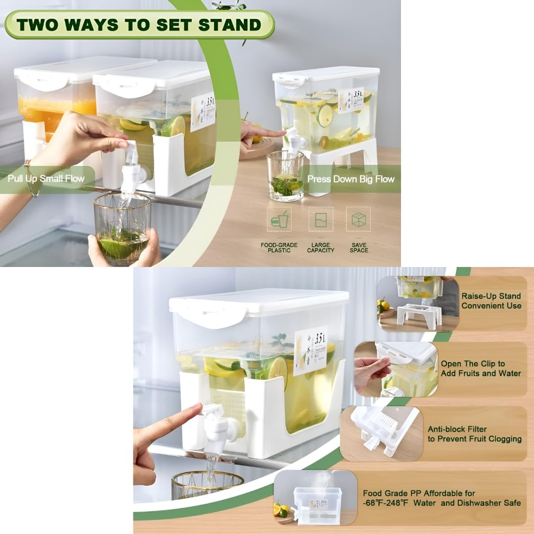 KREPS® Plastic Drink Dispenser with Removable Stand | 3.5 Liters Refrigerator Water Jug Cold Kettle – Fridge Water Jug Cold Kettle for Iced Coffee, Lemonade (1), White
