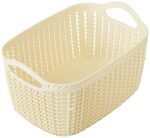 Kuber Industries Unbreakable Multipurpose Storage Basket With Handles|Medium Size & Flexible Plastic |Fruit/Vegetable/Bathroom/Home Basket, Pack of 2(Brown & Cream) -CTKTC39079,Rectangular