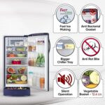 Key features: offers you more space to suit your needs | Moist ‘N’ Fresh | toughened glass shelves | base stand with drawer | fast ice making | auto smart connect | anti-bacterial gasket | door lock | temperature setting range and knob control | stabilizer free operation (90~310 V) | strong elegant bar handle with better grip with good looks & sturdiness