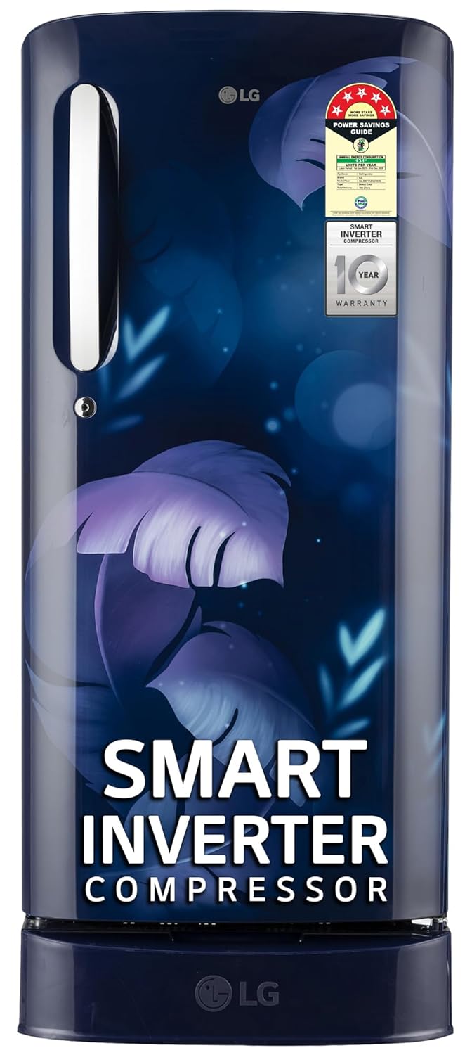 LG 185 L, 5 Star, Smart Inverter Compressor, Direct Cool Single Door Refrigerator (GL-D201ABIU.BBIZEBN, Blue ILAN, Moist N Fresh, Auto Smart Connect & Base Stand Drawer)