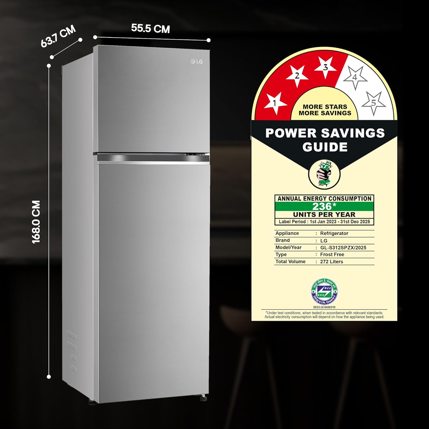 8 reviews for LG 272 L 3 Star Frost-Free Smart Inverter Compressor Double Door Refrigerator (GL-S312SPZX, Shiny Steel, Convertible & Multi Air Flow Cooling)