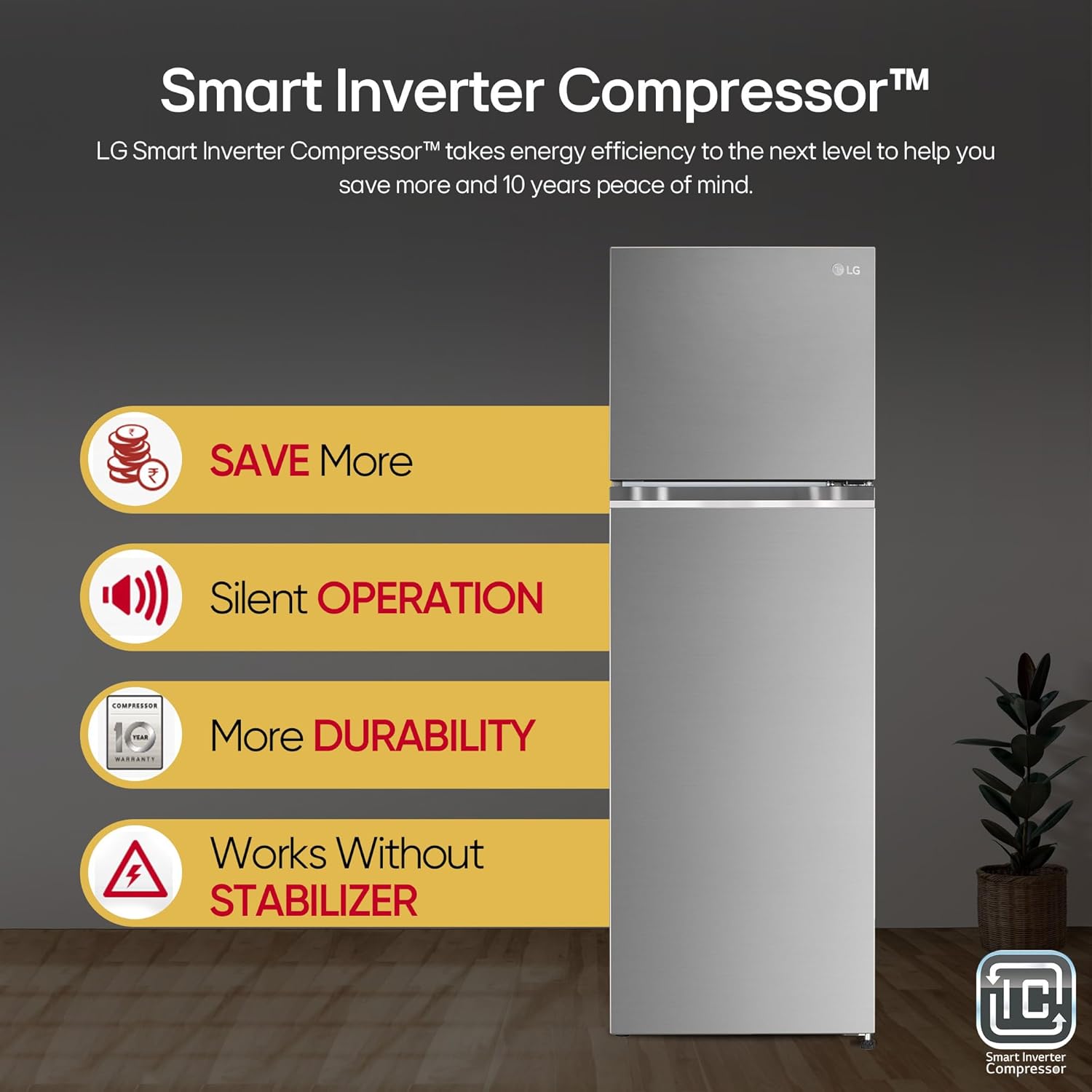 LG’s Smart Inverter Compressor Technology helps save energy, reduces noise and vibrations, and enhances the overall lifespan of the double door refrigerator