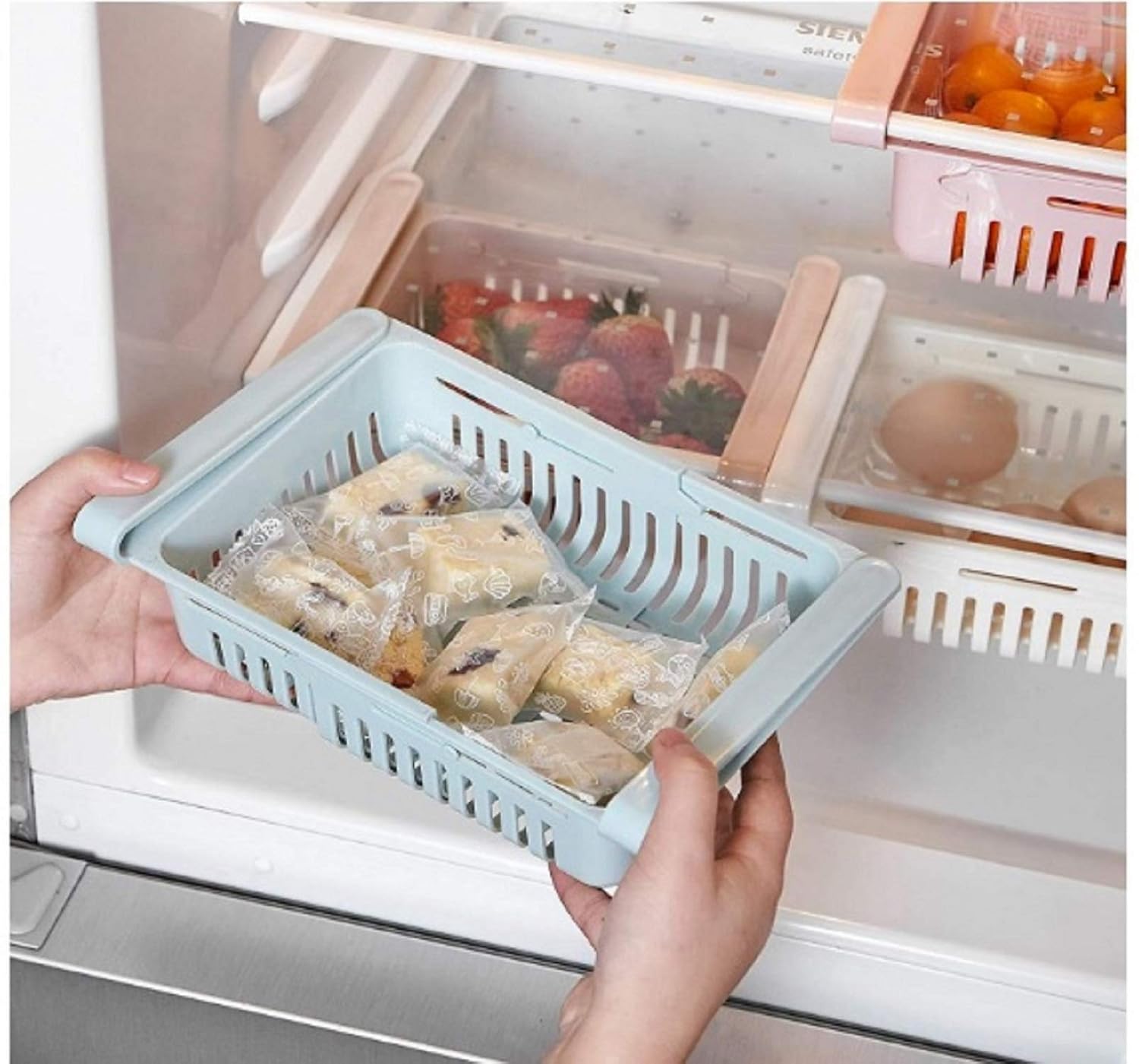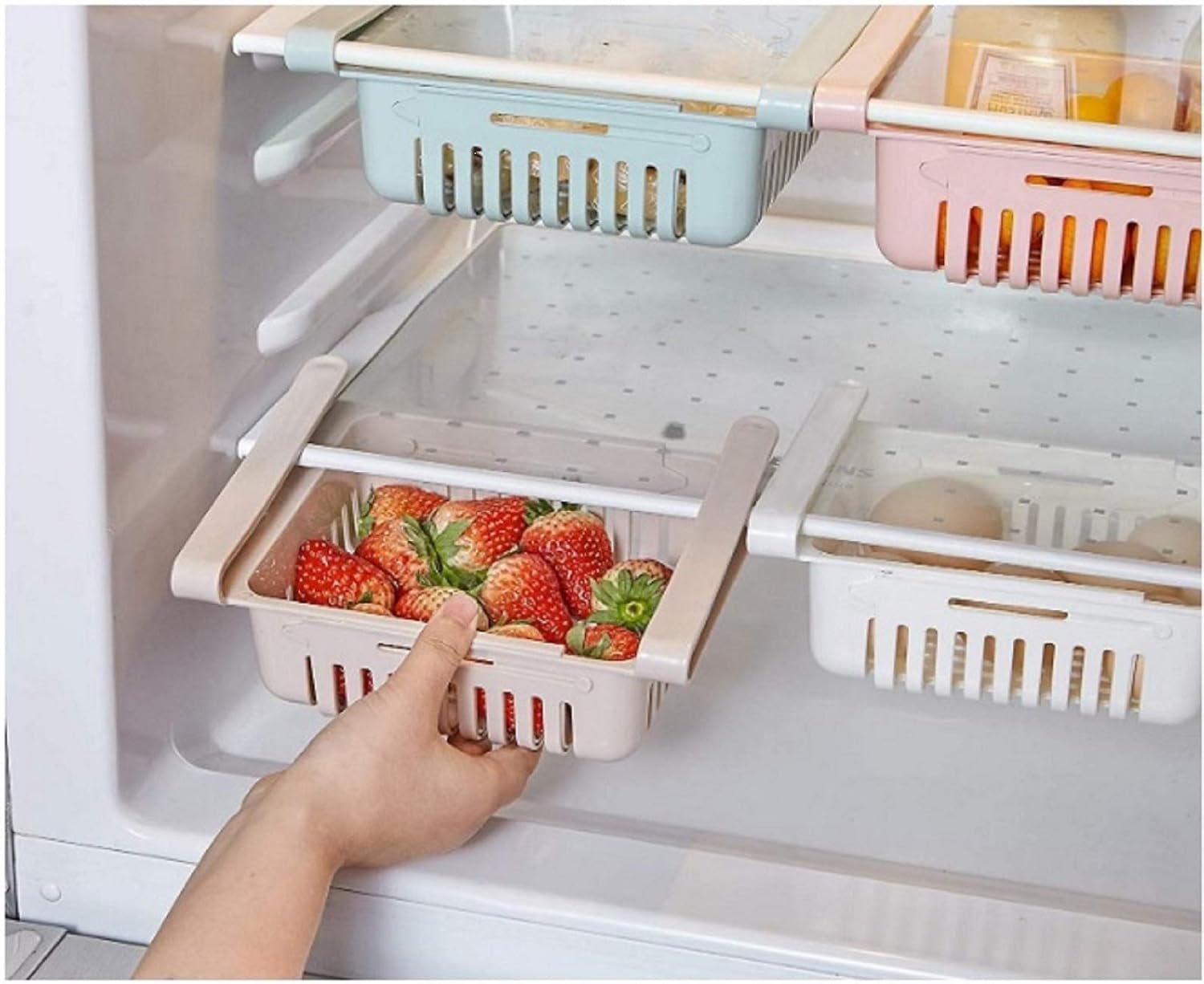 Mechdel Fridge Organizer Drawer, Adjustable Fridge Storage Basket, Fridge Racks Tray Sliding Storage Racks, Random Color, Pack Of 4