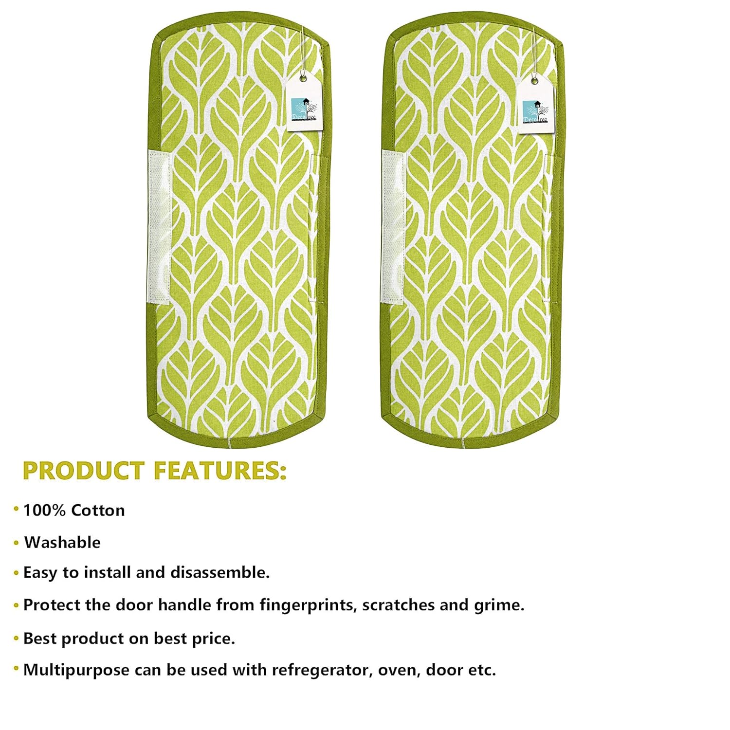 DECOTREE understands your lifestyle and here we enhance the beauty and glamour of your kitchen and Living room. We believe in adding colors and joy to your life. Bright up your home appliance handle with Decotree handle covers. You can use it on the fridge handle, microwave handle, kitchen cabinet handle, and so on. It can keep the handle away from dirty, stains or oil, staying shinny for long time. It can also protect the handle from hitting the wall when you open the door too far. This cover gives your fridge door handle an attractive look and keeps it safe The most touched part of the fridge and its color fade over time. But now you can keep it safe with the door handle cover. Which comes with superior fabric quality and stitches the best way. Made up of premium quality 100%Pure cotton material which is Eco Friendly. And Made in India products that Empower our people. The package has 2 pieces of multipurpose Fridge handle cover.