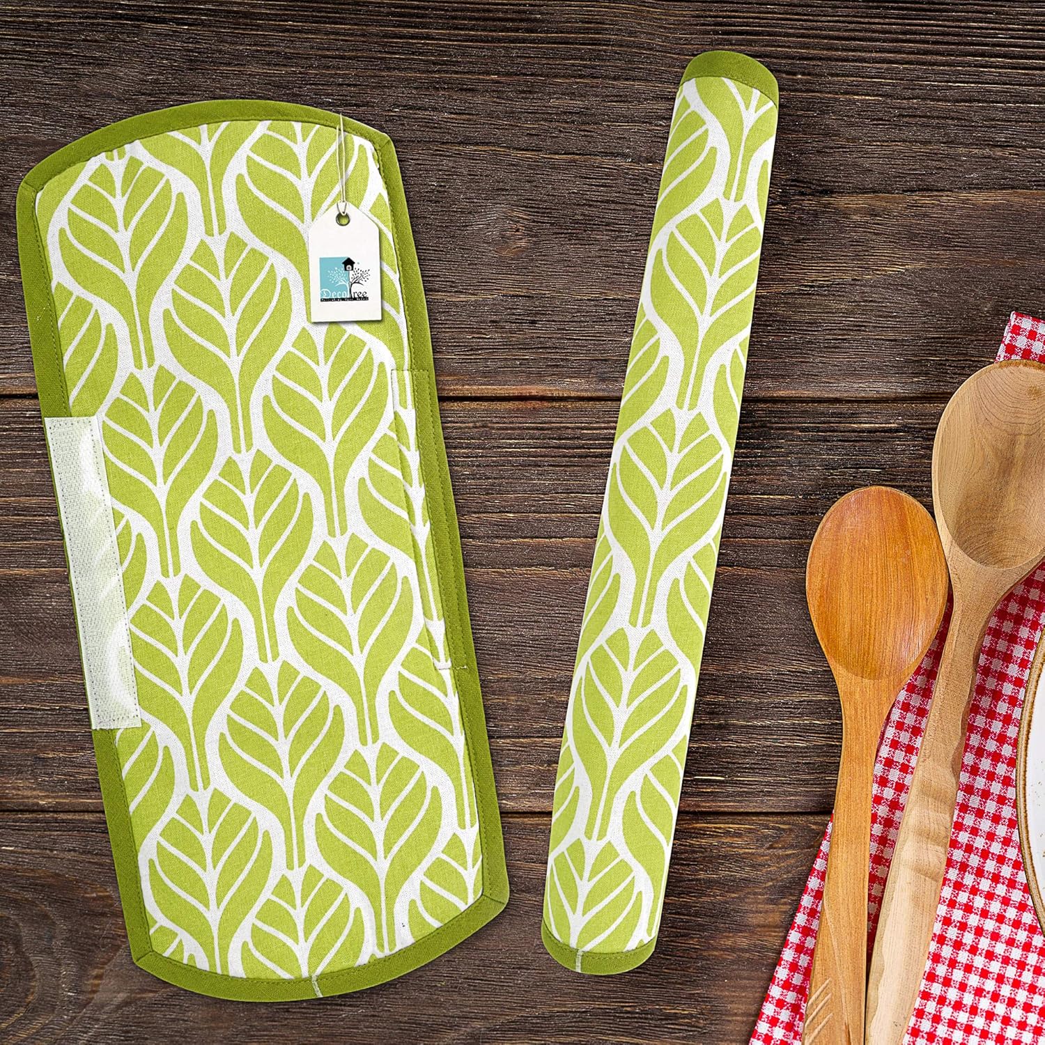 Multipurpose Cotton Fridge/Refrigerator Handle Cover Set of 2 Pieces (Size : 6×12 Inches, Green)