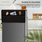 NABAAT Fridge Cover Top for Single Door Refrigerator Kitchen Decor Durable Dustproof Waterproof Modern Design with 6 Side Pockets for Kitchen Accessories – 130 x 54cm (Black)