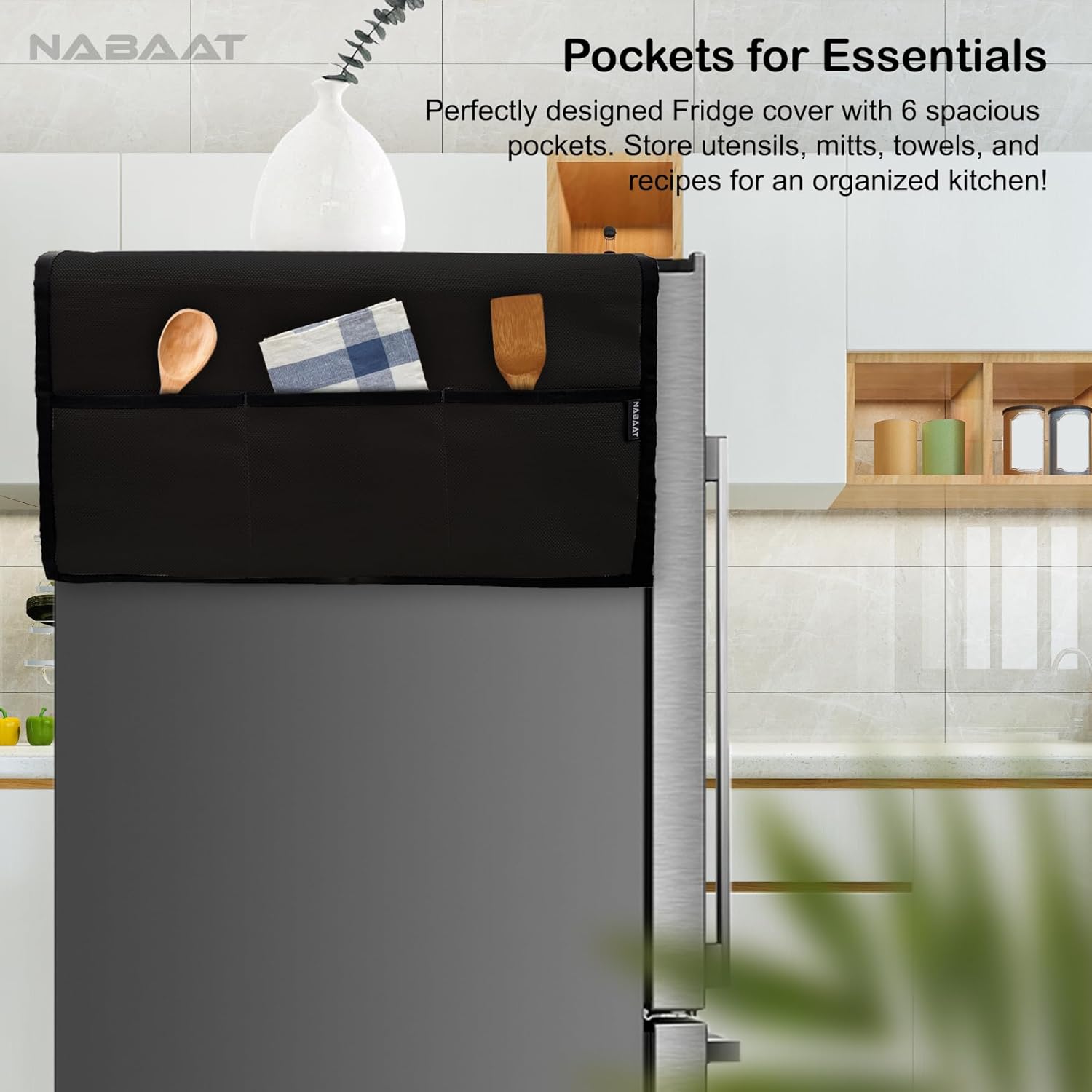PROTECT YOUR FRIDGE: Nabaat Fridge cover keeps your beloved Refrigerator under wraps while being protected from various kitchen elements including dust, dirt, stains, spills, fingerprints, scratches and more. It is padded to prevent the appliance from tiny impacts. You can be assured that you will have the Fridge look as good as new.