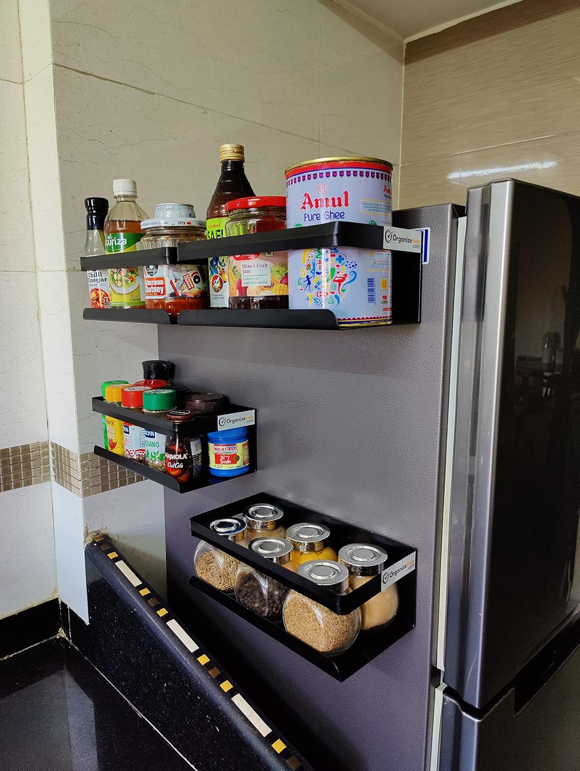8 reviews for OrganizeMee Magnetic shelves Magnetic rack for fridge [25 X 12 Cm] Wall Mount Spice Rack, Bottle Holder for Fridge, Washing Machine,Microwave Organizer, Fridge side storage rack (Black Qty:1)