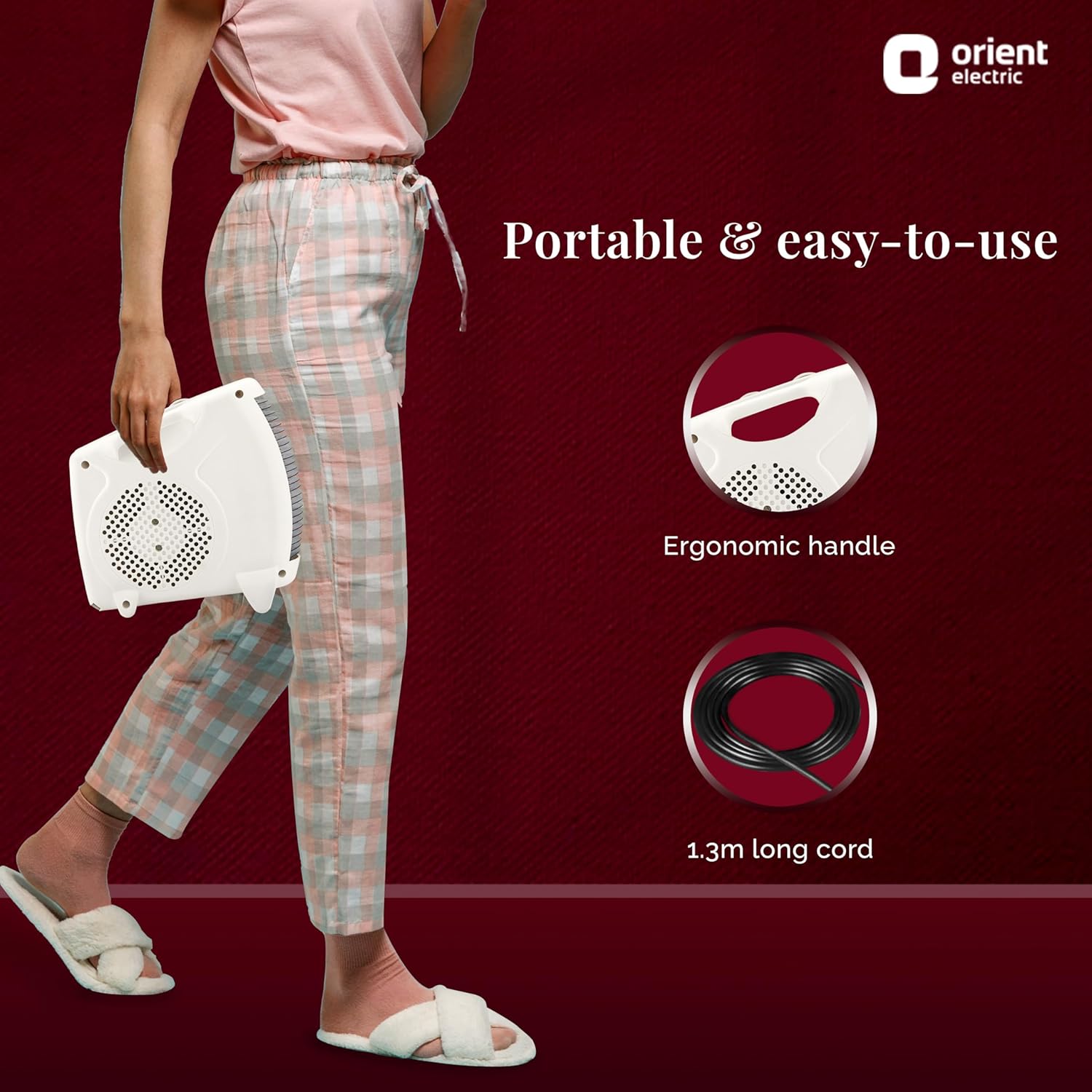 100% Copper motor for a long-lasting performance: Orient Electric’s portable room heater- Areva comes with a 100% Copper motor for a reliable performance.