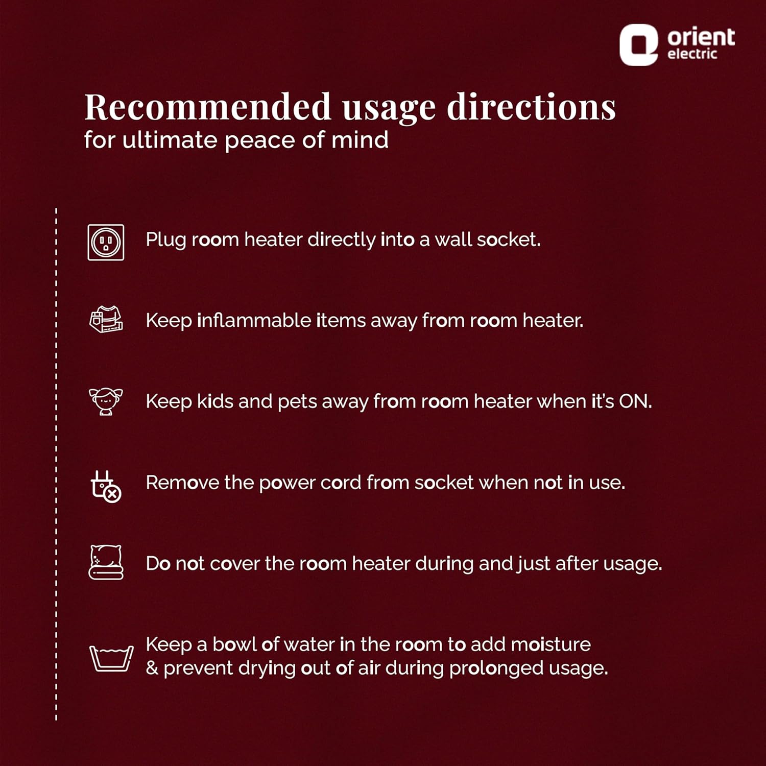 Enjoy complete protection & long life with in-built safety features: The room heater for home is equipped with safety features for temperature control, preventing burnout of heating elements, protection against overheating and fire hazards.