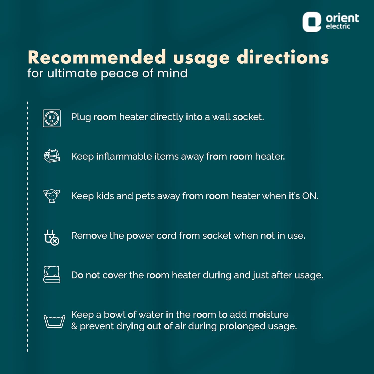Compact & portable design: This Orient room heater for home is compact and portable is design. Carry your winter companion anywhere you want to beat the winter chills within seconds