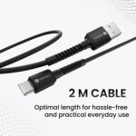 Portronics Konnect X 3A Unbreakable Nylon Braided USB to Type C Fast Charging Cable 2M Long, Supports All Type C Smartphones and Devices(Black)