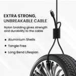 Nylon Braided Cable: This cable has nylon jacket braiding and aluminum alloy shells which makes it stronger, unbreakable, and tangle-free. Experience durability with fast charging capabilities.