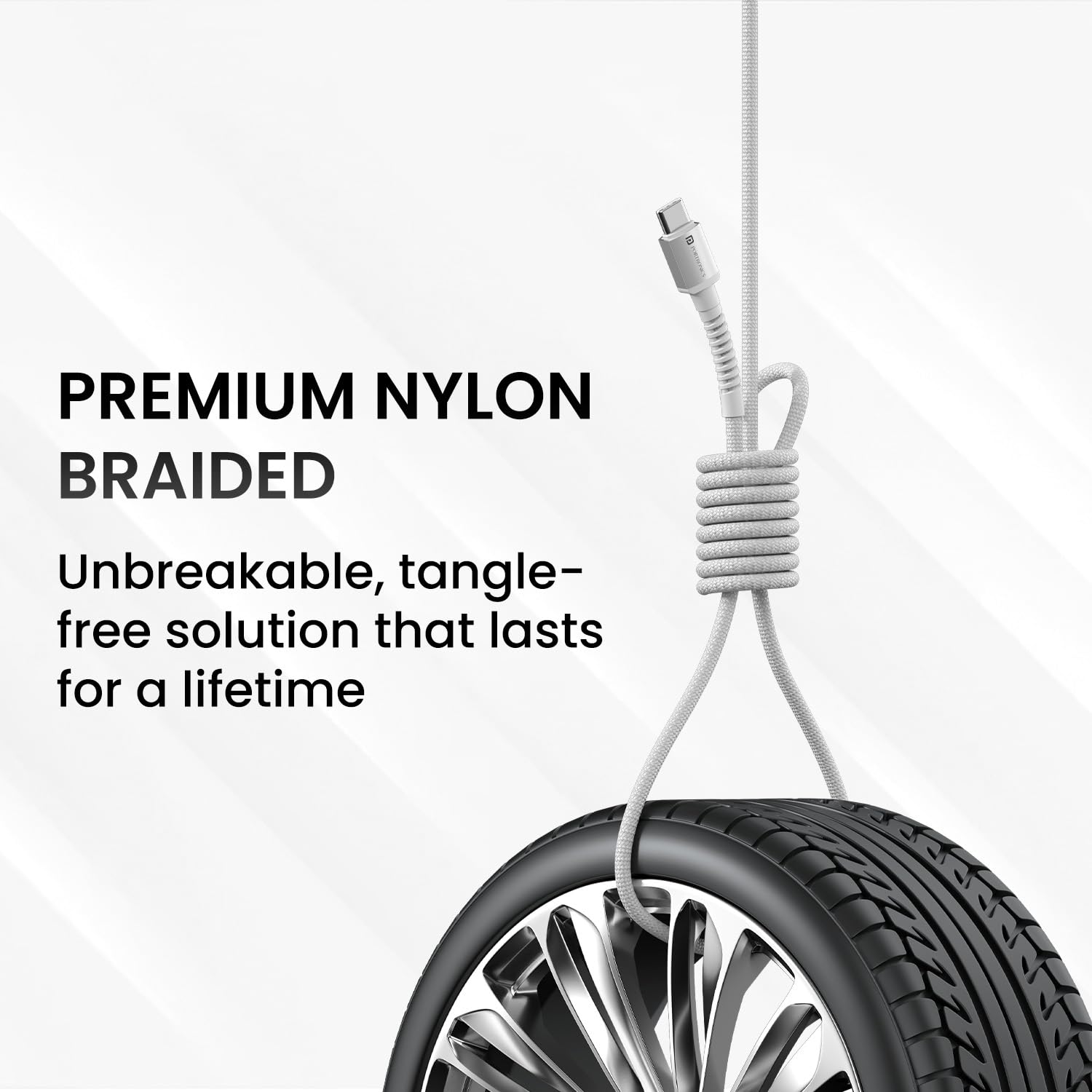 Unbreakable & Durable: Built to last, this USB to Type-C cable has a high-quality nylon woven design with aluminum shells, preventing wear and tear over time. Its tangle-free design helps with easy storage.