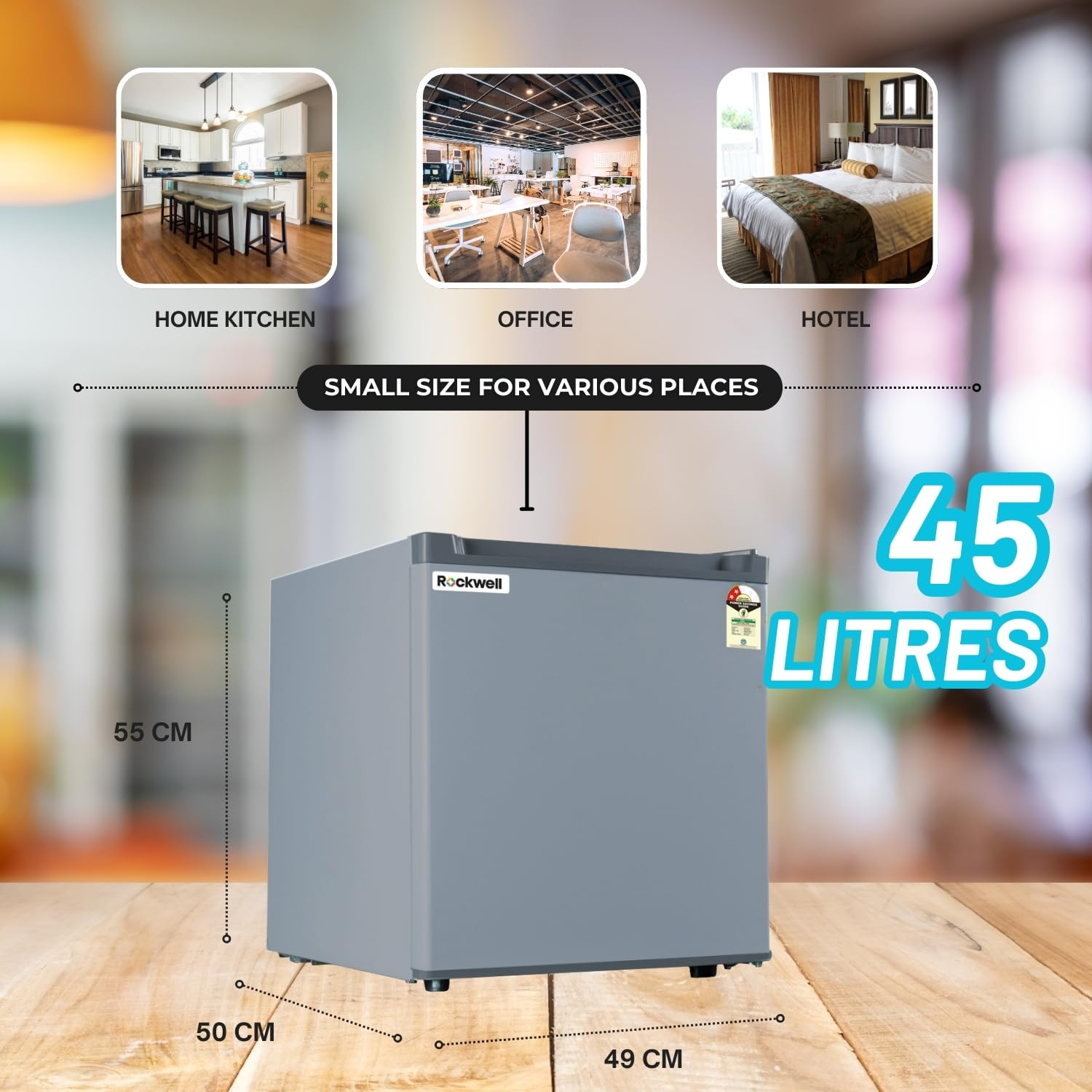ROCKWELL 47Ltr, 2 Star, Mini Refrigerator with Freezer, 5 Year Warranty, Direct Cool, Ideal for Bedroom, Small Spaces, Hostels, and Offices, Grey