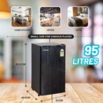 Capacity: With a storage capacity of 91 liters, this mini refrigerator provides enough space to store essentials like beverages, snacks, fruits, and a few frozen items. It’s perfect for individuals or small families looking for extra refrigeration without taking up too much space.