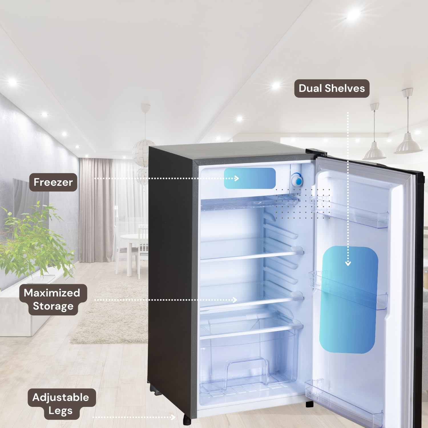 Compact Size: Its compact dimensions make it ideal for small living spaces, such as studio apartments or dorm rooms. There is no In-Built Light in the fridge.
