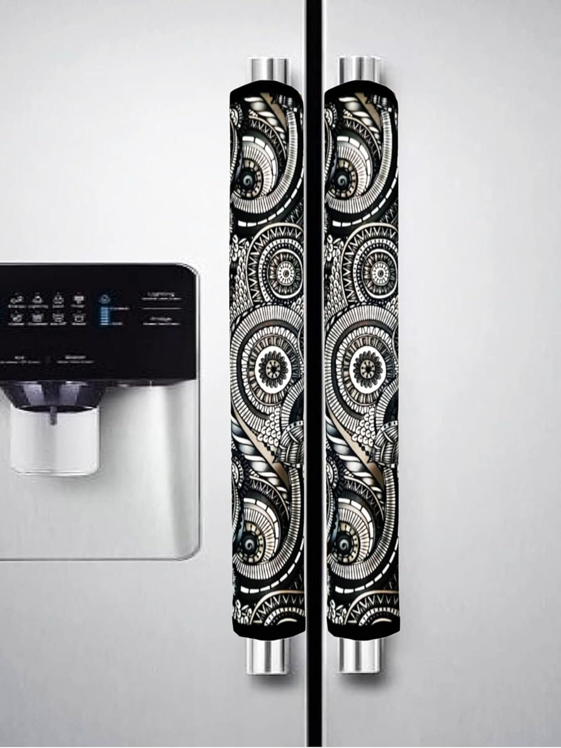SA Handlooms 3D Design Refrigerator/Fridge Handle Cover Set of 2,6×12 Inch-Black