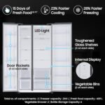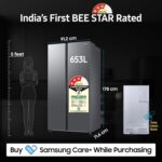 Samsung 653 L, 3 Star, Frost Free, Double Door, Convertible 5-in-1 Digital Inverter, Side By Side AI Enabled Smart Refrigerator with WiFi (RS76CG8003S9HL, Silver, Refined Inox)