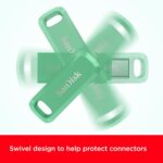 At a Glance The 2-in-1 flash drive with a reversible USB Type-C and a traditional Type-A connector. Move content between your USB Type-C smartphone, tablets, and Mac and USB Type-A computers.(2) Free up space on your USB Type-C smartphone so you can take more photos and videos.(2) Automatically back up photos using the SanDisk Memory Zone app.(3) High-performance USB 3.2 Gen 1 drive with up to 400MB/s fast read speeds(1) Dual-purpose swivel design helps protect connectors and features a keyring hole.