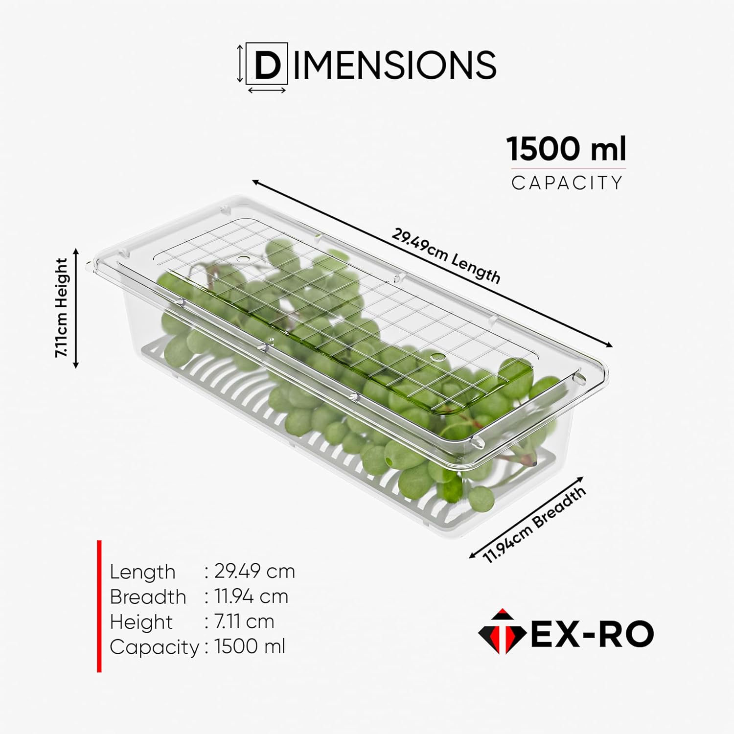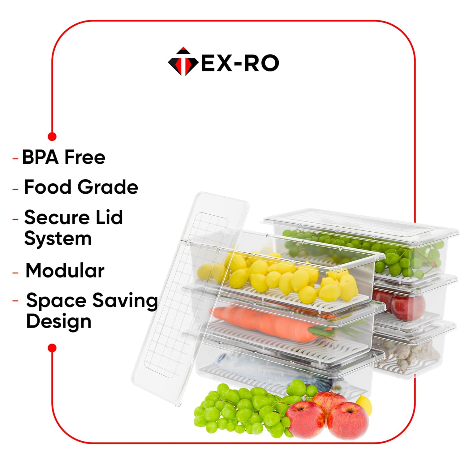 TEX-RO 6 Fridge Storage Containers | Fridge Organiser Storage Boxes with Removable Drain Plate, Lids, Stackable| Fridge Organizer & Fridge Storage Box | Vegetable Storage Box for Refrigerator(1500ML)