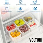 Perfect Size: The VOLTURI kitchen organizer container box bins are meticulously designed to fit seamlessly into the refrigerator side door, maximizing space utilization and saving valuable fridge space. By storing vegetables separately in these containers, freshness is preserved, spoilage is minimized, and healthier storage habits are encouraged. Plus, their convenient design ensures easy access with just a simple open of the fridge door.
