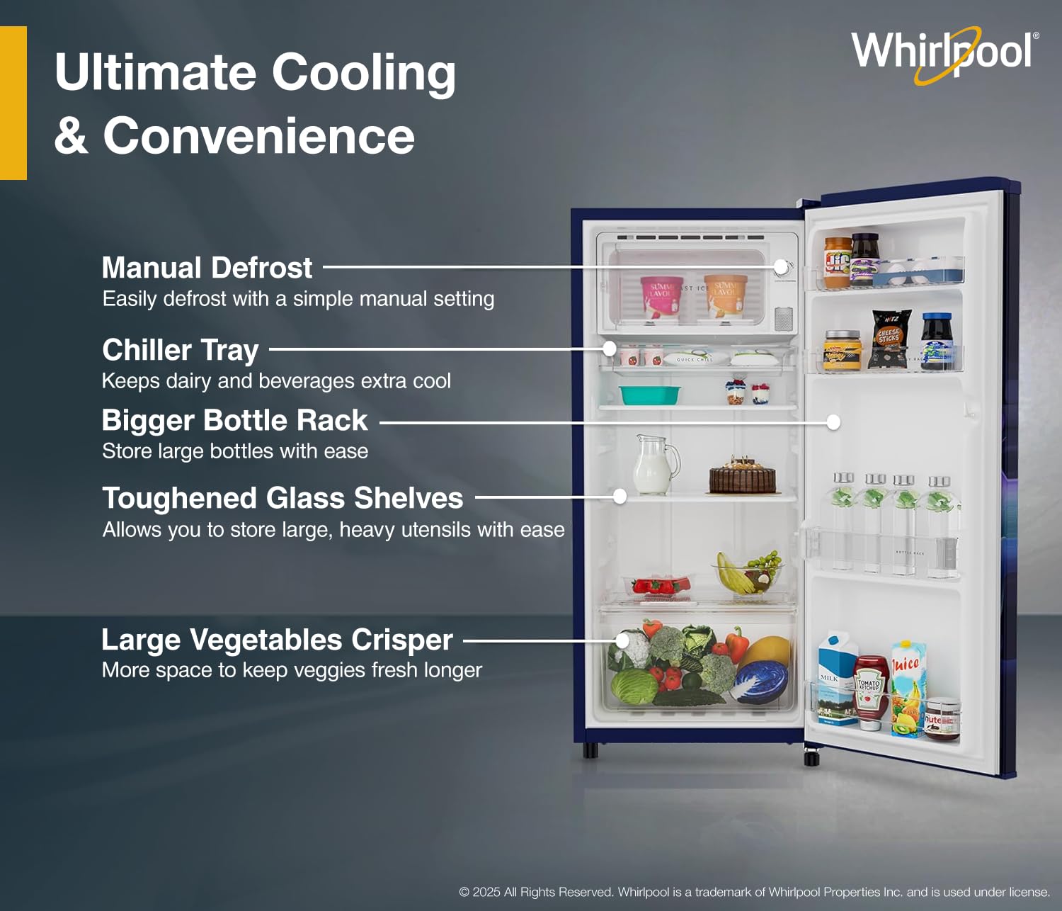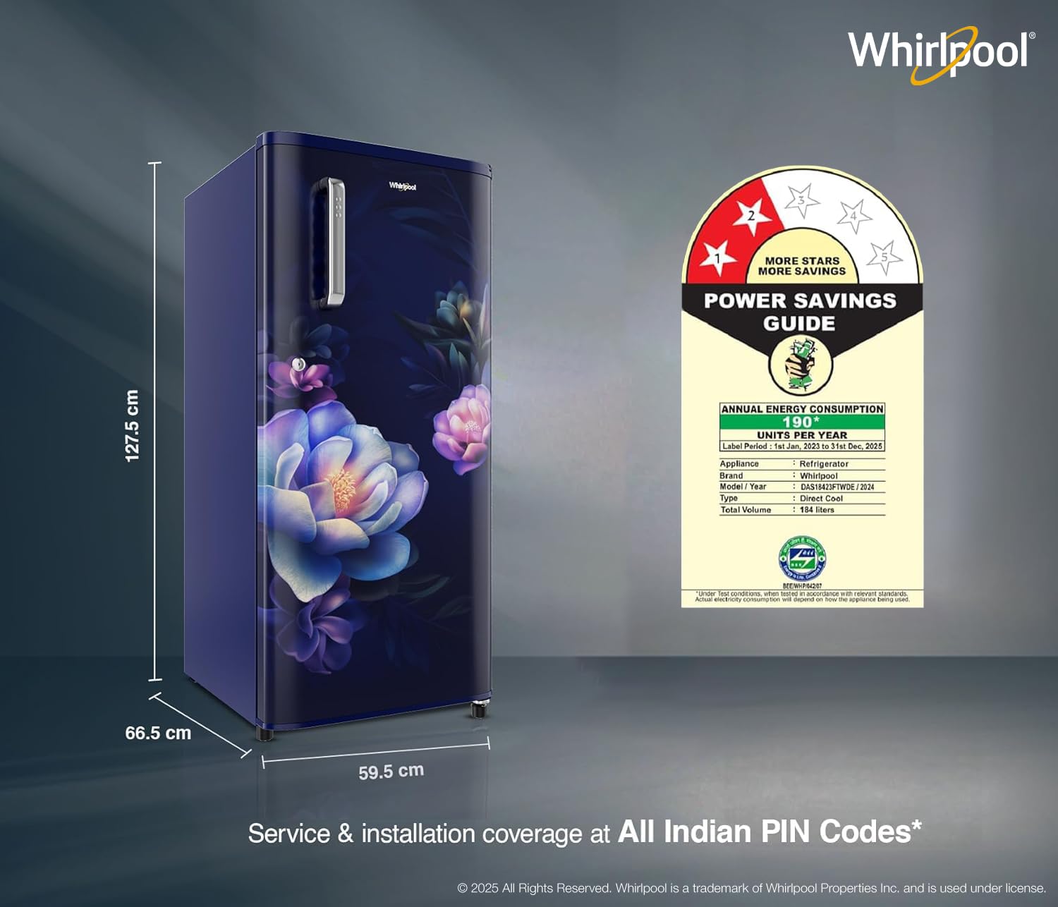 Whirlpool 184 L 2 Star Direct-Cool Single Door Refrigerator (205 WDE PRM 2S SAPPHIRE SERENA-Z)