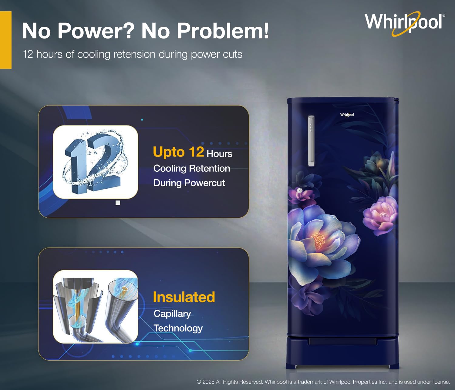 Insulated Capillary Technology, the capillary which carries the refrigerant from the compressor to the freezer is surrounded by super cold gas leading to benefits such better compressor efficiency, faster cooling and 9 Hours* cooling retention in the refrigerator.