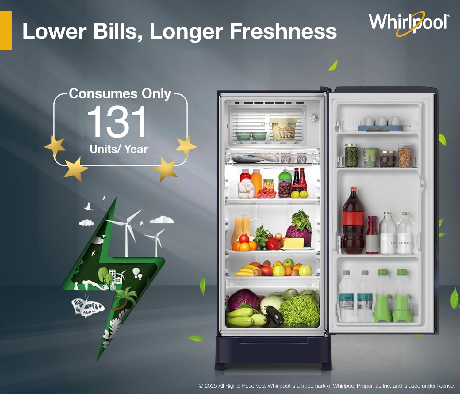 WDE Refrigerator come with 5 Star Energy rating that can help you save money on your electricity bill. It uses less power compared to lower star rated refrigerators but may consume more power compared to higher star rated models
